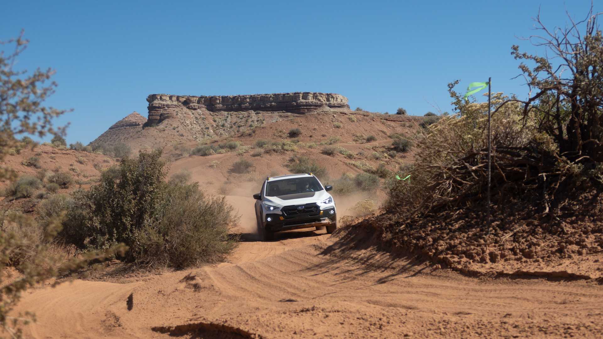 Over a test loop featuring heavily corrugated dirt roads, soft shallow sand, compacted dirt, and some rock gardens, I found the Wilderness nice and smooth at a cautious but not tedious pace. I found that the X-Mode system worked better the more I trusted it—on a particularly hairy climb up a huge pile of packed dirt, the car started kicking terrain behind itself and stopped moving upwards. But I just kept my foot in it, casual-but-consistent pressure, and the car figured out what it needed to do, propelling us up to the top with minimal drama.