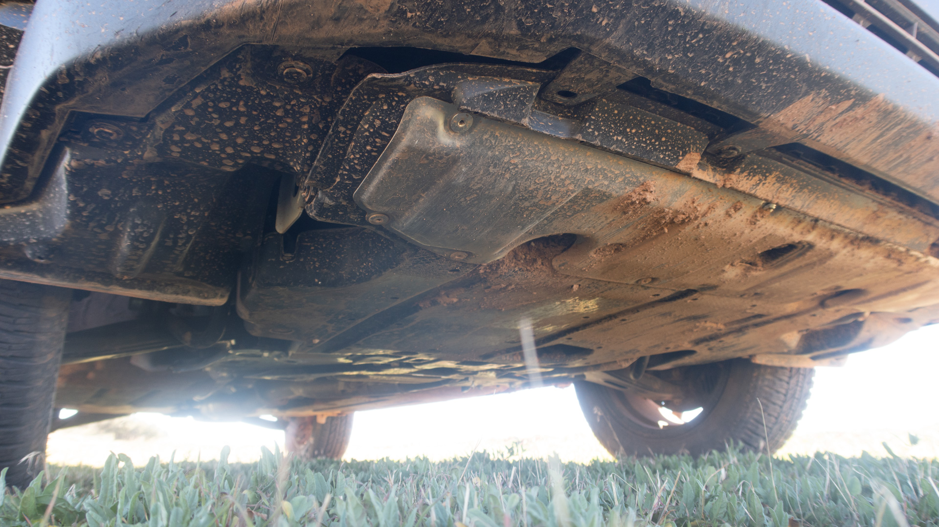Also under the car is an engine skid plate (always nice to have factory-designed armor), a supposedly more robust rear differential (Subaru R167 instead of R152, for the nerds), and an extra pressure sensor in the continuously variable transmission. Subaru’s people explained that that sensor would allow the CVT to react more quickly and appropriately in low-traction or sticky conditions. Subaru’s X-Mode traction control setting also helps the car keep moving through rough stuff, extrapolating for conditions and applying power as best as it can.