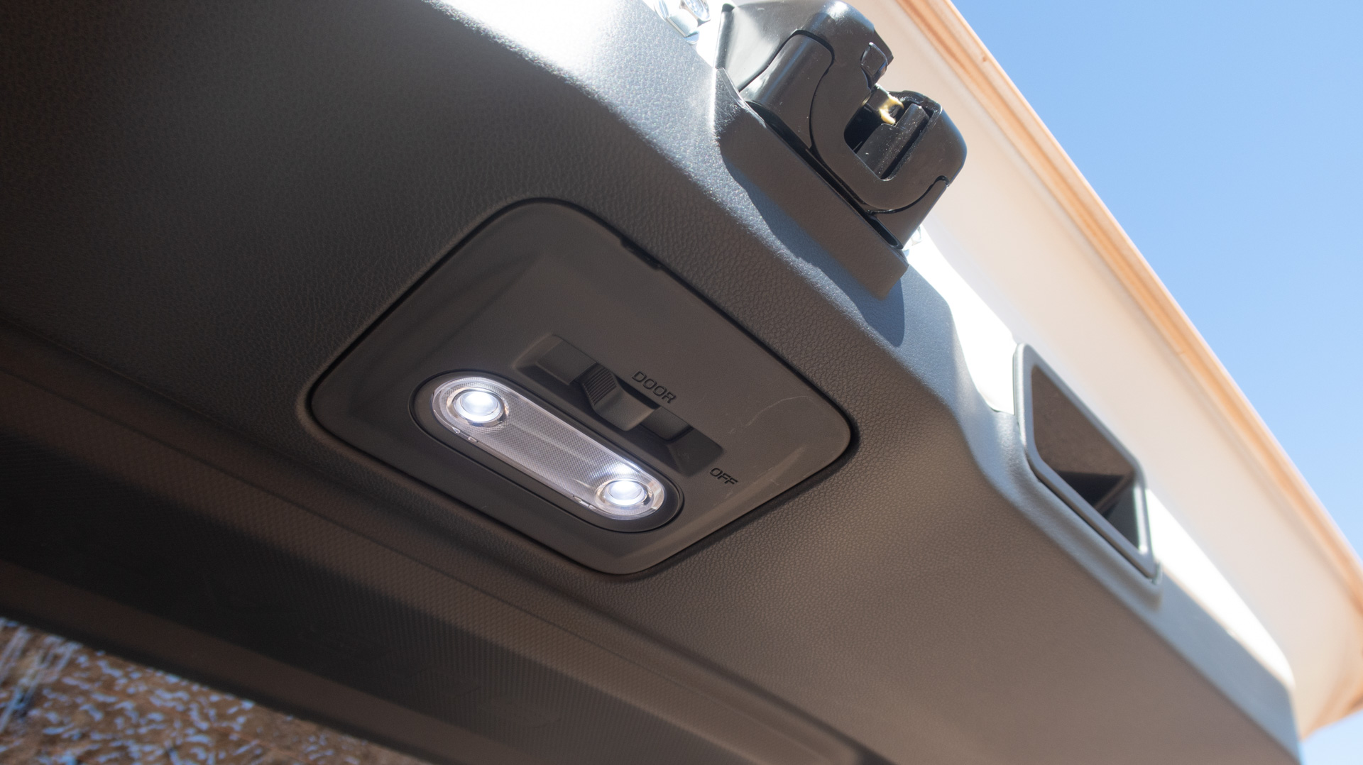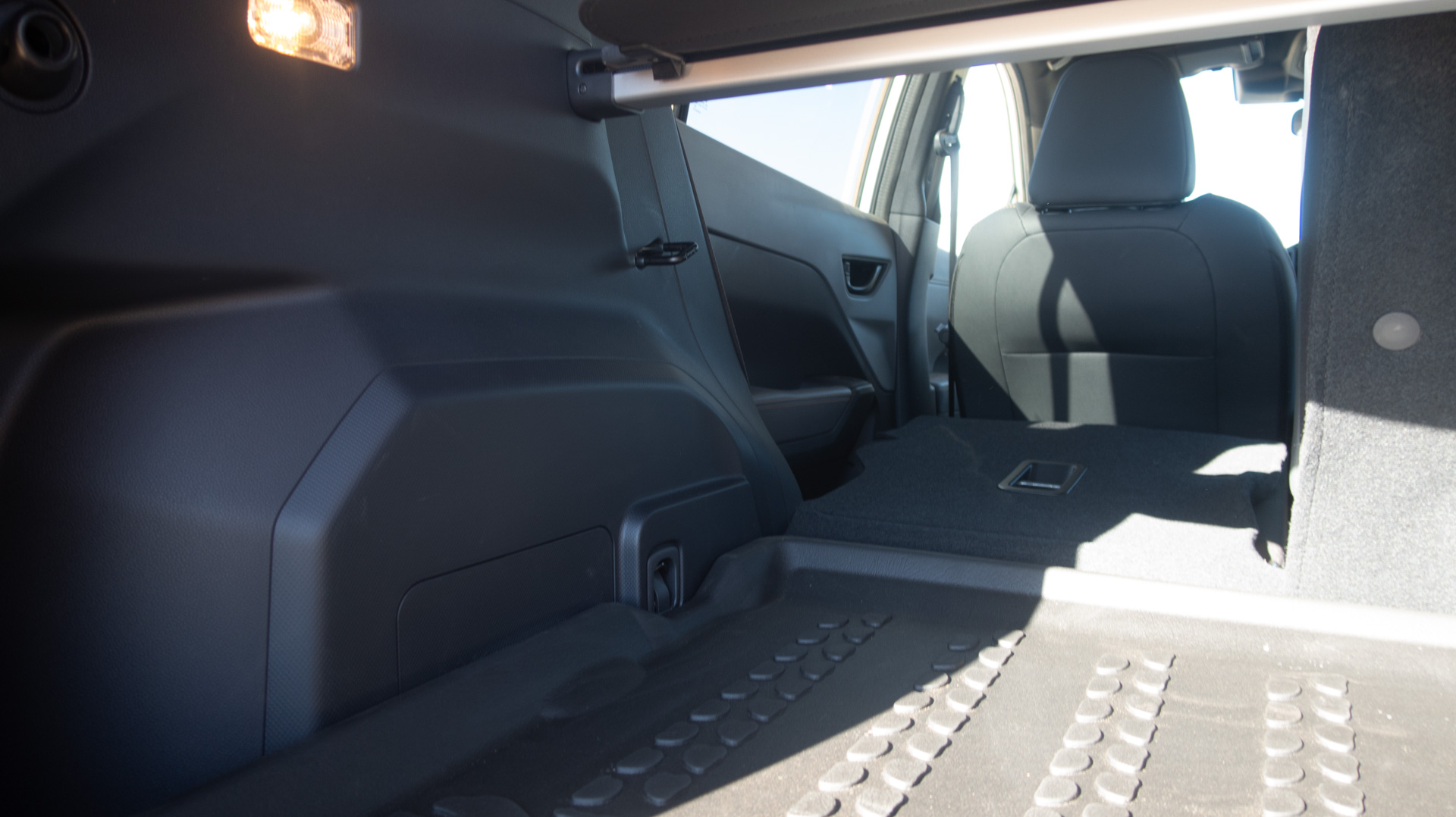 Otherwise, the car also has a couple of little features that are genuinely useful. In the cargo area, there are two huge cupholders, for tailgate-party or post-exercise recuperation situations. There’s also a switched light on the inside of the cargo hatch for nighttime cargo loading. And my personal favorite—the rear door jambs are designed in such a way that there’s an easy place to put your foot when you’re trying to access something on the roof.