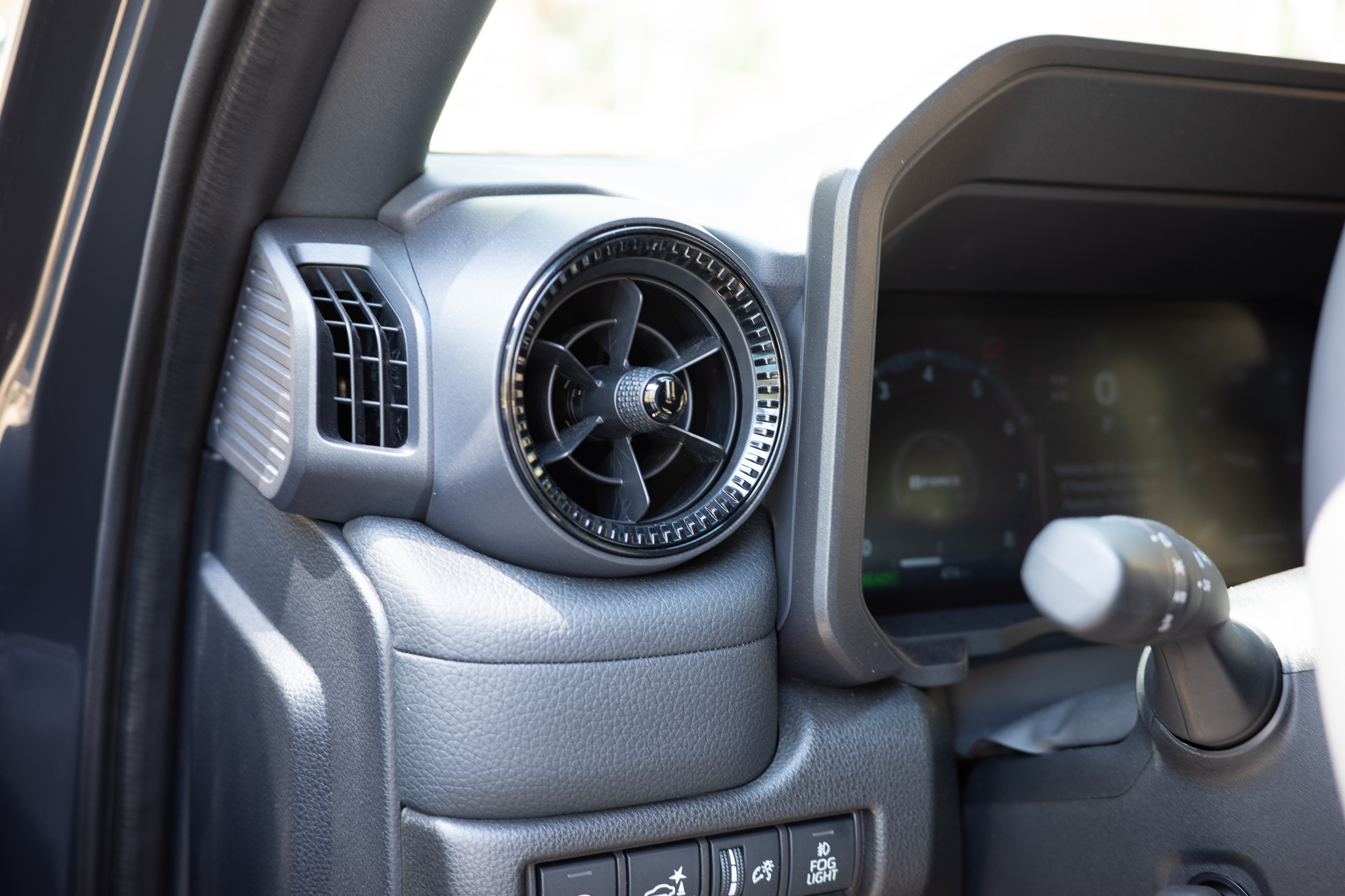 The decision between trims could come down to the added interior and off-road tech of the middle and higher trims. There’s an upgraded 10-speaker JBL sound system in the middle trim, and the infotainment screen gets a big size bump to 12.3 inches versus the 8 inches in the base model. Android Auto and Apple CarPlay are standard no matter the trim. The basics are all there in the 1958 model and the plush texture of its cloth seats is fantastic. It’s a true throwback right down to the interior.