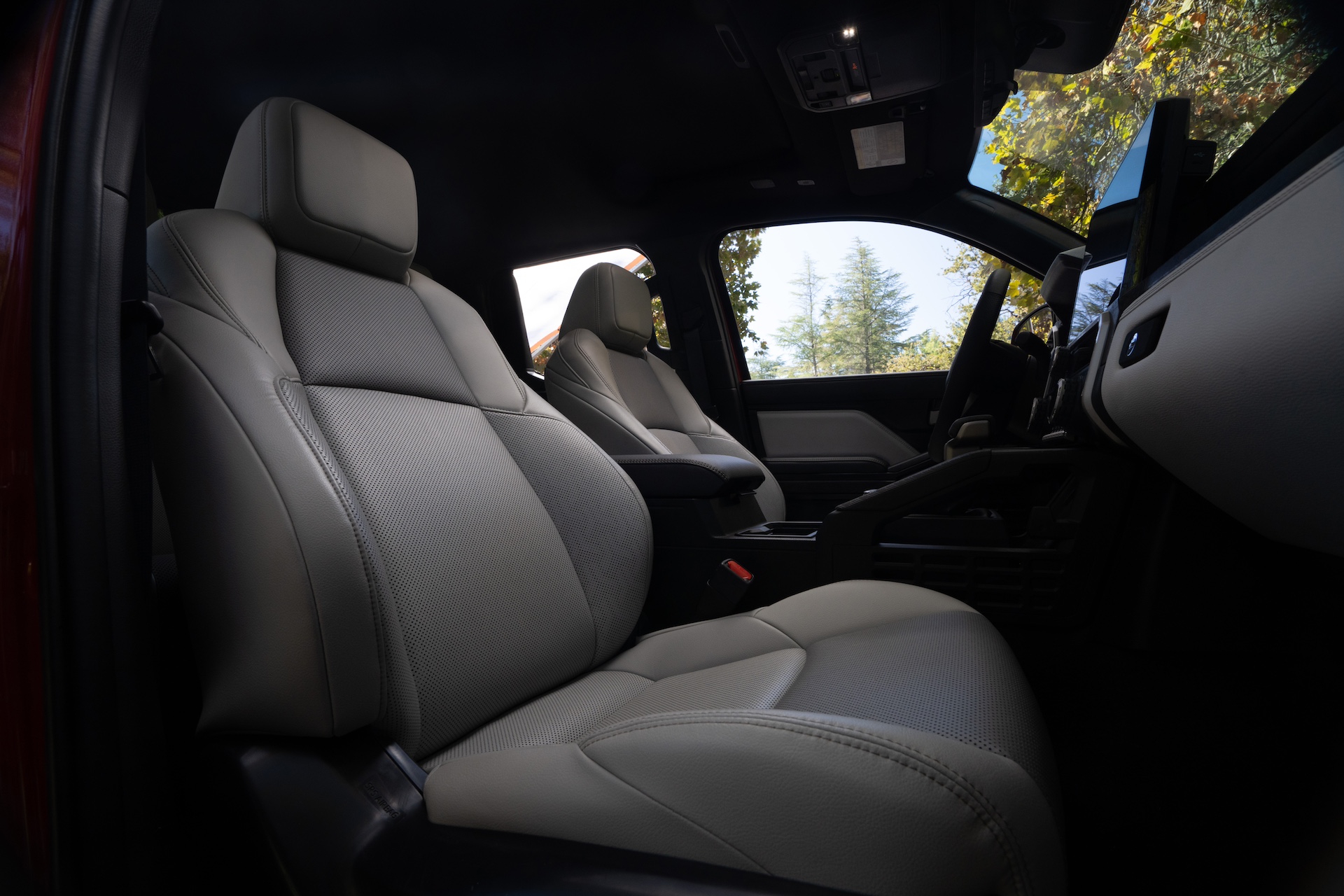 The cabin has been completely redone with modern comfort in mind. Even the base SR trim feels surprisingly nice and well-appointed with a 7-inch digital gauge cluster and an 8-inch center touchscreen. The chunky controls feel good to the touch and are easy to operate. Buyers can opt for a 14-inch touchscreen as they climb the lineup ladder, and they can also spec a 12.3-inch digital gauge cluster. Lastly, the seats have been redesigned and are considerably more ergonomic than before, while Toyota claims there’s now three times more under-seat storage space in the rear, at least for non-hybrid models. Tacomas come in two cab configurations: XtraCab, which offers two opening doors with more room behind the seats, and the traditional Double Cab with four opening doors.