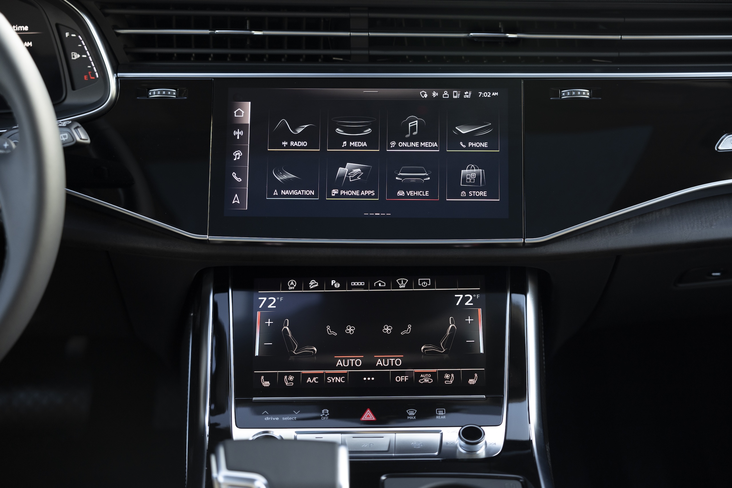 Inside, the changes are even more subtle, but it appears to be a case of Audi not fixing what wasn’t broken. Two touchscreens—10.1 inches up top and an 8.6-incher below running climate—are nice to look at and decently easy to use. Audi’s default haptic touch thing requires you to push down quite hard on these to do anything, but that tech can be turned off. New infotainment themes change up the wallpaper, are synced to ambient lighting, and can be had in all Q7s from model year 2023 onwards.