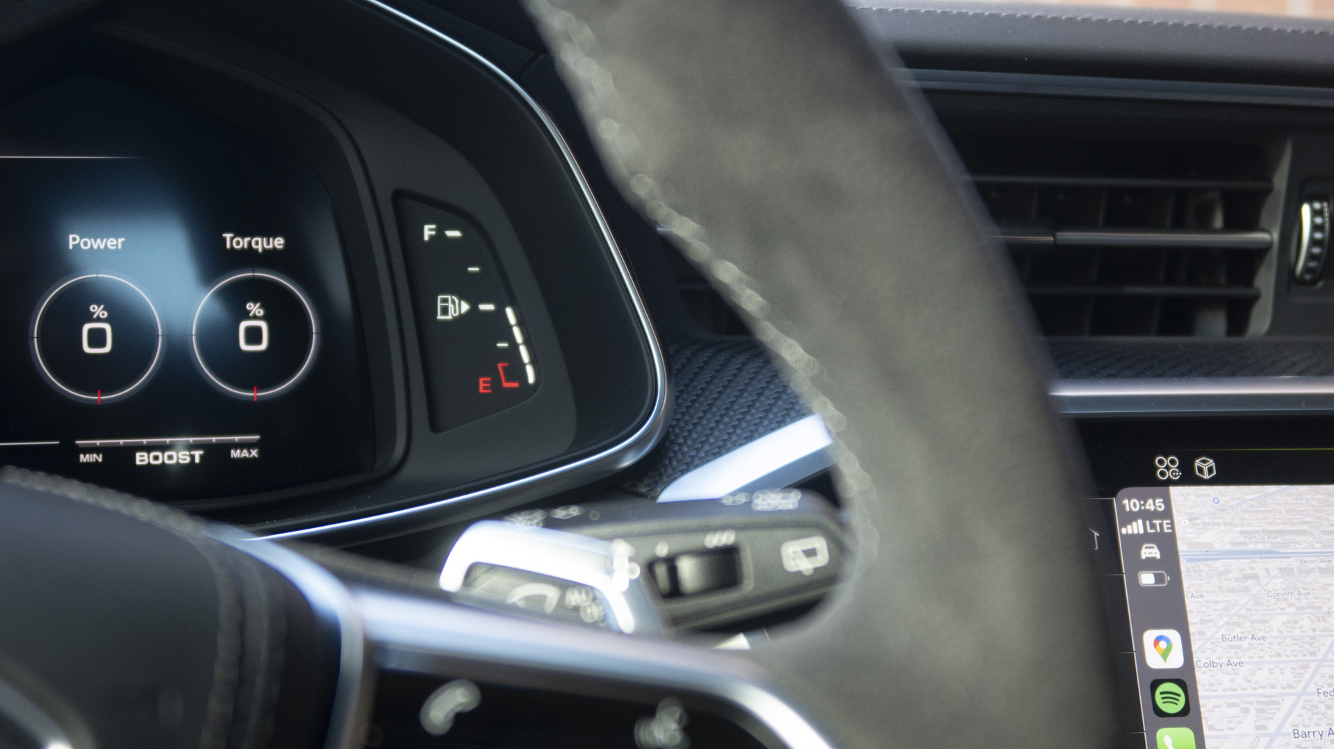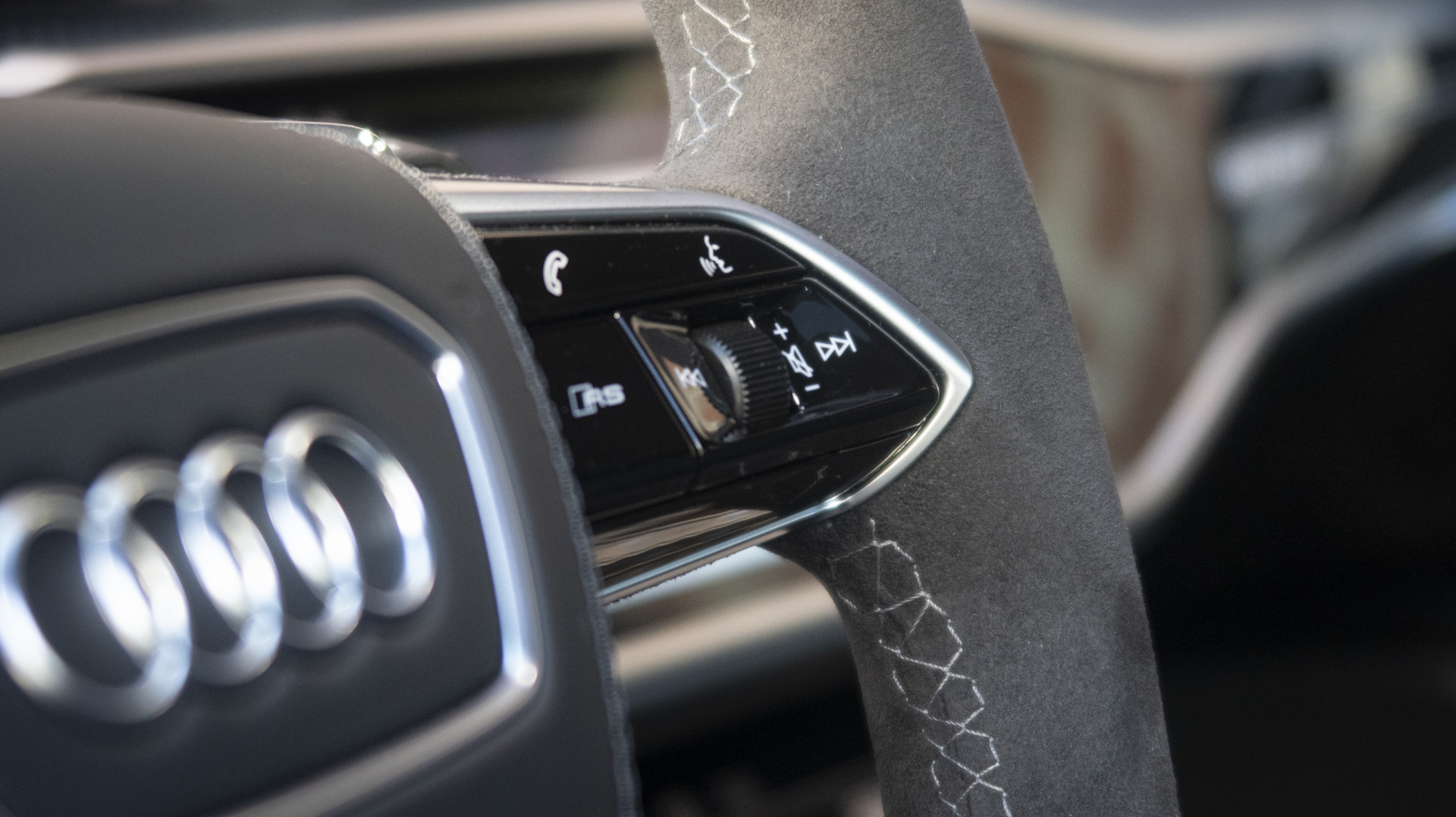If paparazzi stuck a mic in my face as I was exiting this car, my unfiltered take would be: “Looks perfect, Audi ride quality is unmatched, and Alcantara steering wheels suck.” Yeah—a week with this car was enough to convince me that Kristen Lee was right and this microsuede material is not as nice to touch as it is to look at. Hardly a dealbreaker here, though.