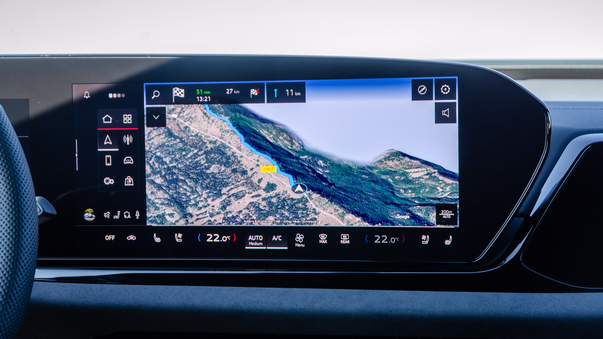 Don’t get me wrong, it’s very premium feeling, most of its ergonomics are good, and the seats are comfy and supportive. But it feels dark, cramped, and entirely focused on screens, of which there are three, and most are frustrating to use. The optional passenger screen is kind of cool but seems utterly useless most of the time. The graphics themselves are crisp, but it’s somehow both boring and overly complicated to use, an impressively frustrating combination.