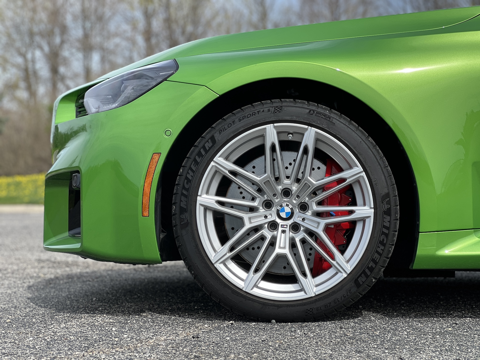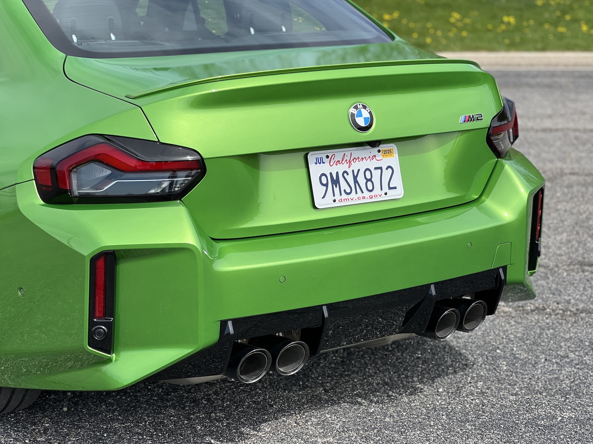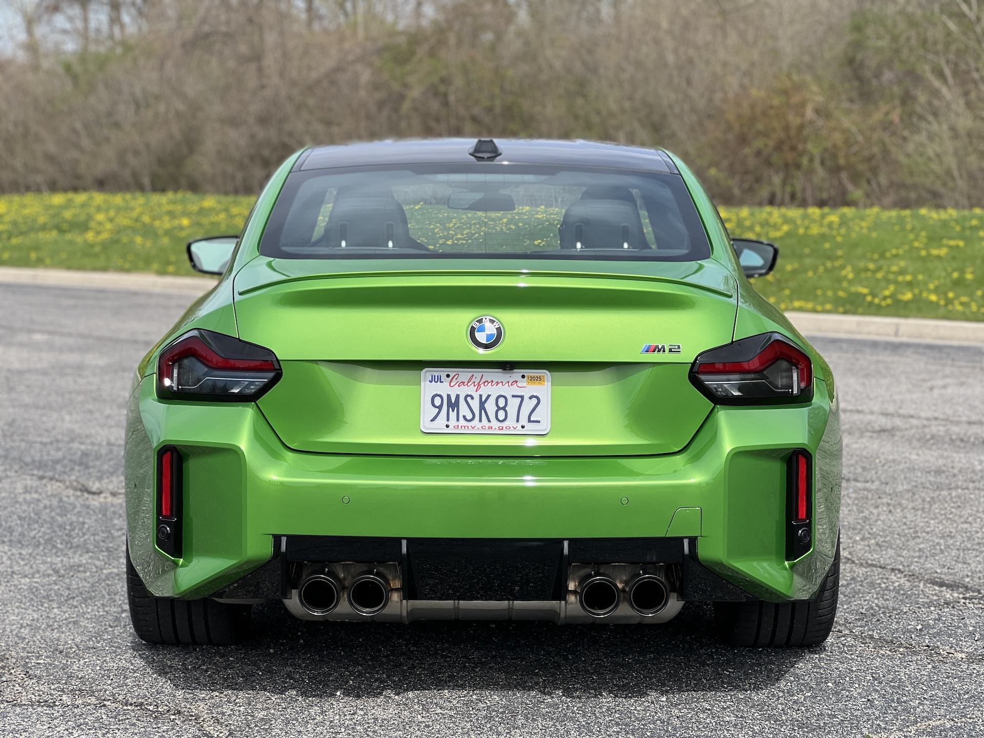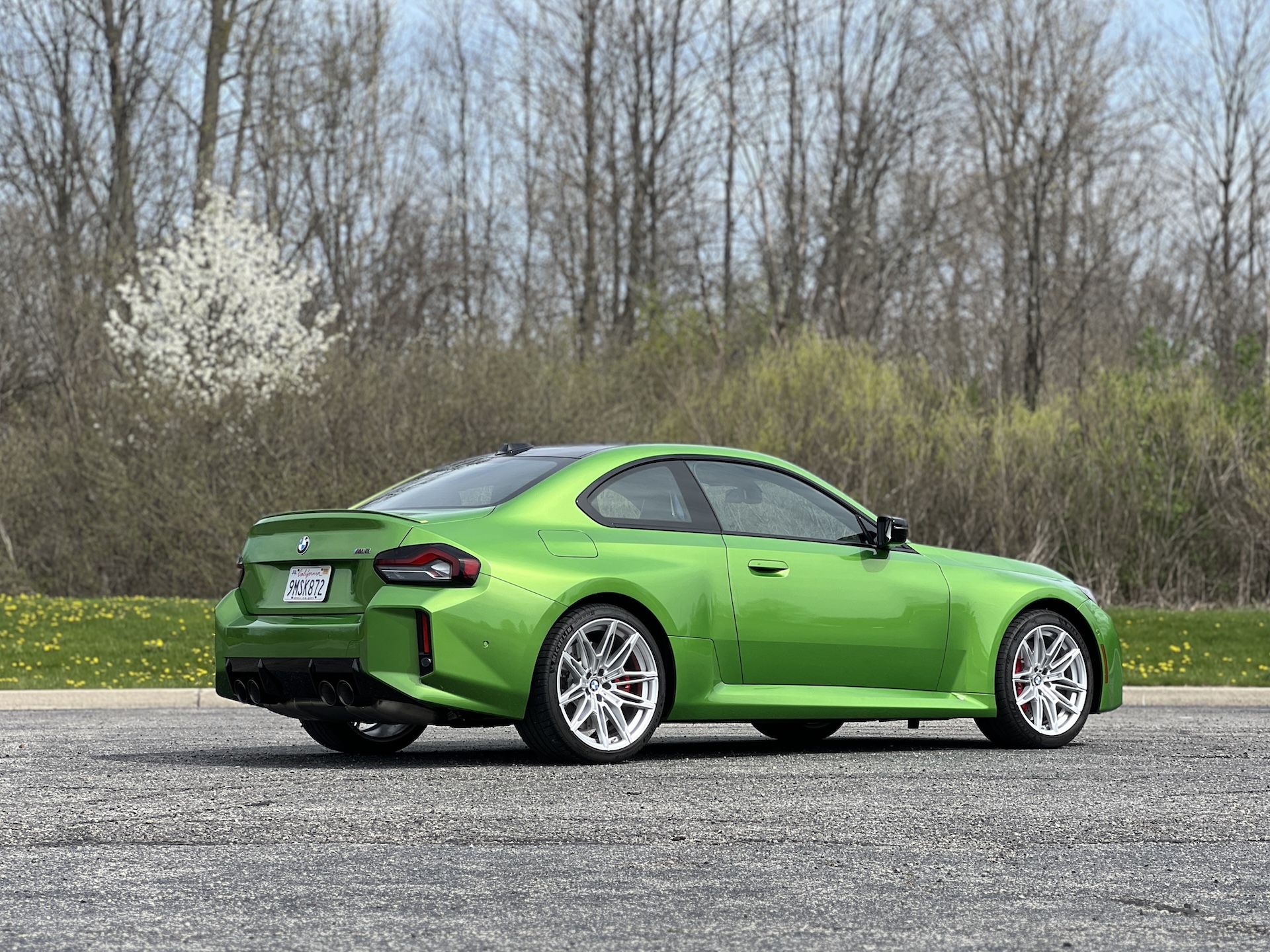 Exterior design changes are subtle. The exhaust tips are now black, as are the silver-outlined M2 badges. There are a slew of new color choices, including the no-cost Sao Paulo Yellow and $650 metallic shades. New BMW Individual colors, like the Java Green coat on this test car, will cost you $3,000.