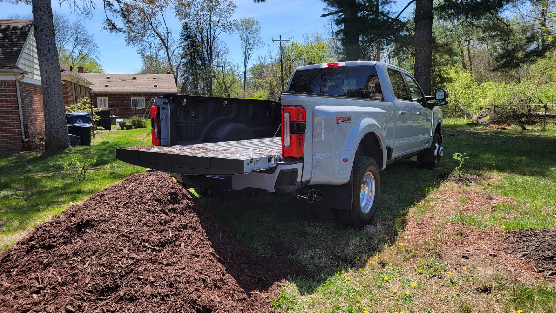 And the second thing? Well, this an F-350 dually. Eight foot bed or not, to overload this thing with mulch, it would have to be mixed with molten lead. So while the visuals may be satisfying, it’s not all that much of a test. But hey, I was committed.