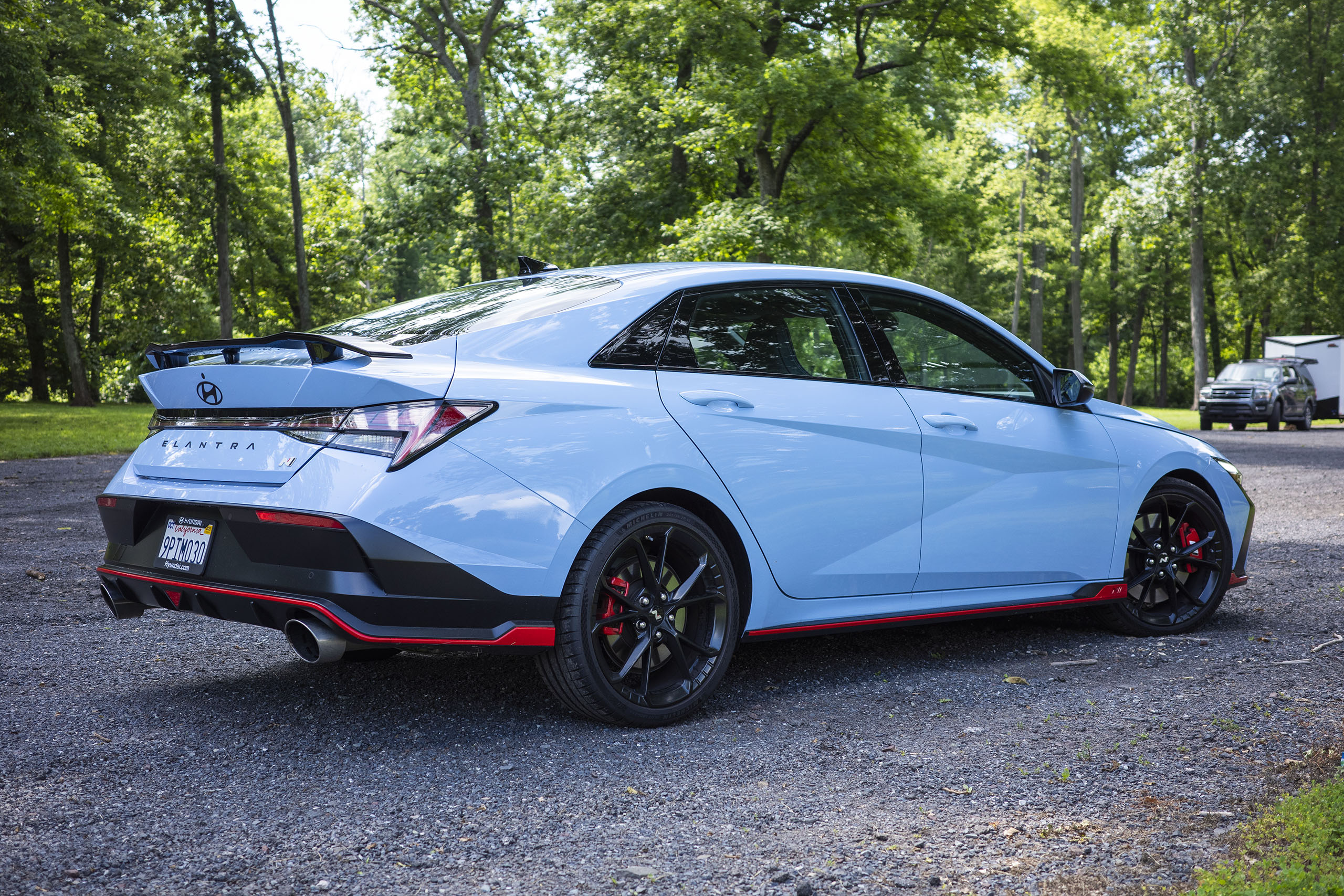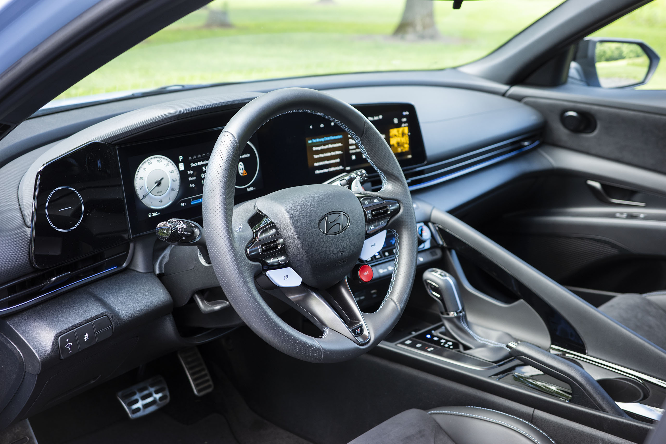 Right off the bat, I’ll say I never drove the Elantra N before its recent refresh that tightened up the chassis. This latest iteration has a revised steering rack, new urethane rear suspension bushings, improved control arm bushings, reinforced engine mounts, and tweaked adaptive dampers. It also has a lower, leaner-looking front fascia. By some automakers’ standards, that’d be enough change to mark a new generation.