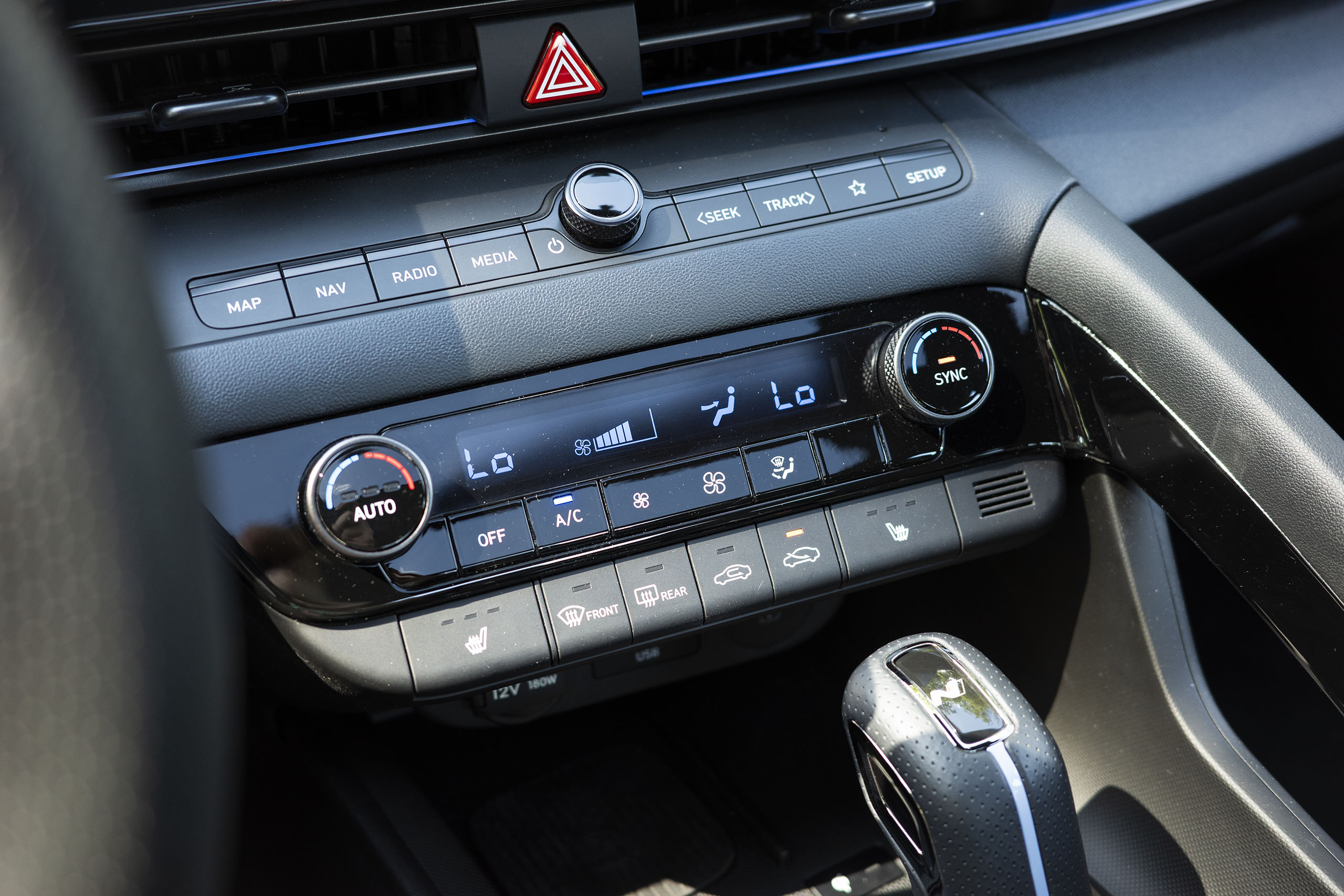Strangely, just like in the Genesis G70 I drove last year, the Elantra’s USB-C port marked with a charging icon does not support Apple CarPlay or Android Auto; for those, you need to plug into the USB-A port beside it. A slightly frustrating quirk of older Hyundai Group infotainment systems, but worth highlighting nonetheless.