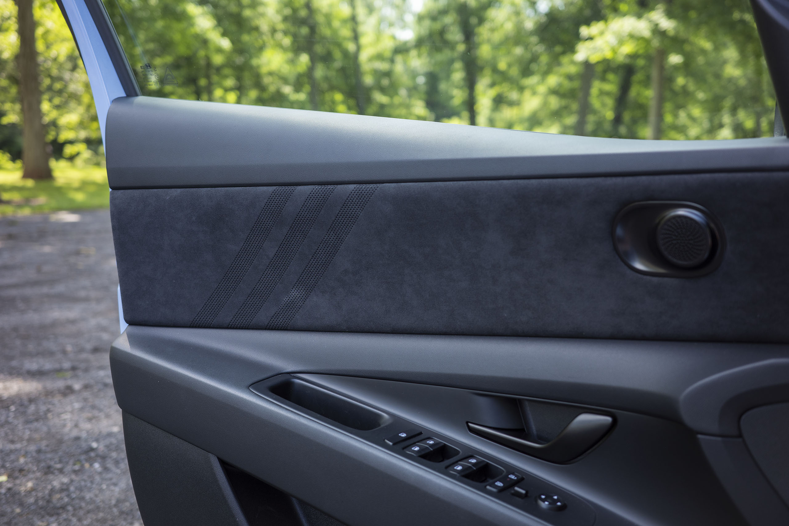 Quality in here is good enough, though don’t get your hopes too high. The sticker might read $37,000, but this is still a $23,000 car at its core with miles of plastic. That weird handle next to the front passenger seat is practically a magnet for people to grab hold of, then wince when it inevitably creaks. And I have absolutely no idea what is going on with the circular thing to the left of the steering wheel, which Hyundai has admitted serves zero purpose. It needed to be gone yesterday.