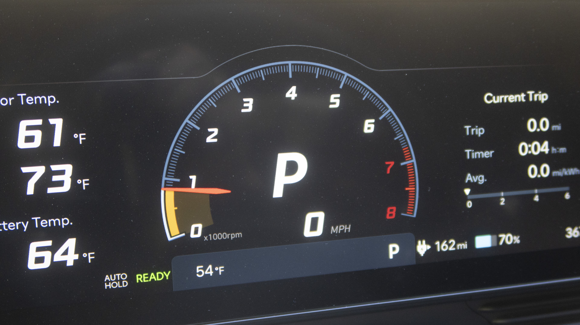 When you do need a charge, the car’s supposed to be able to go from 10% to 80% in 18 minutes if you can connect to a 350 kW DC fast charger. A 50 kW DC charger should be able to do it in one hour and 10 minutes. Charging the car to max from 10% on a 240-volt outlet at 10.9 kW would take 7 hours and 20 minutes—even that’s not terrible as long as you can just have it plugged in overnight.