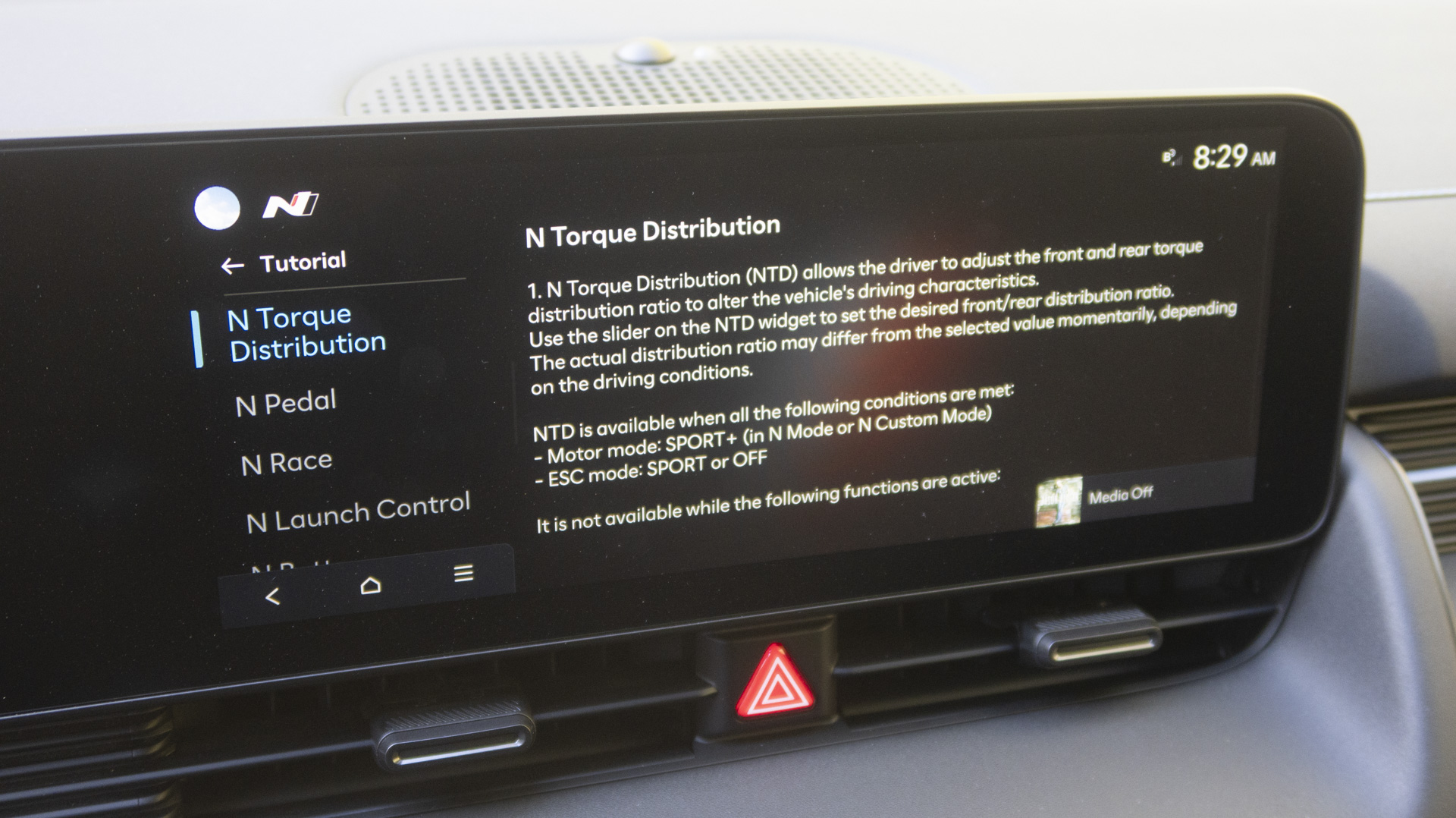 I know—one could argue that every modern performance car has a degree of this experience. With today’s traction management tech and almost-everything-by-wire, how connected to the road are you, really, in anything built after about 2015? In principle, the idea of a manual mode that can only affect performance adversely, and forces the computer to behave exclusively for my amusement, feels kind of cringey, just like the sound piped in to give the motor an aural character. I’m glad Hyundai allows you to silence it with the push of a button.