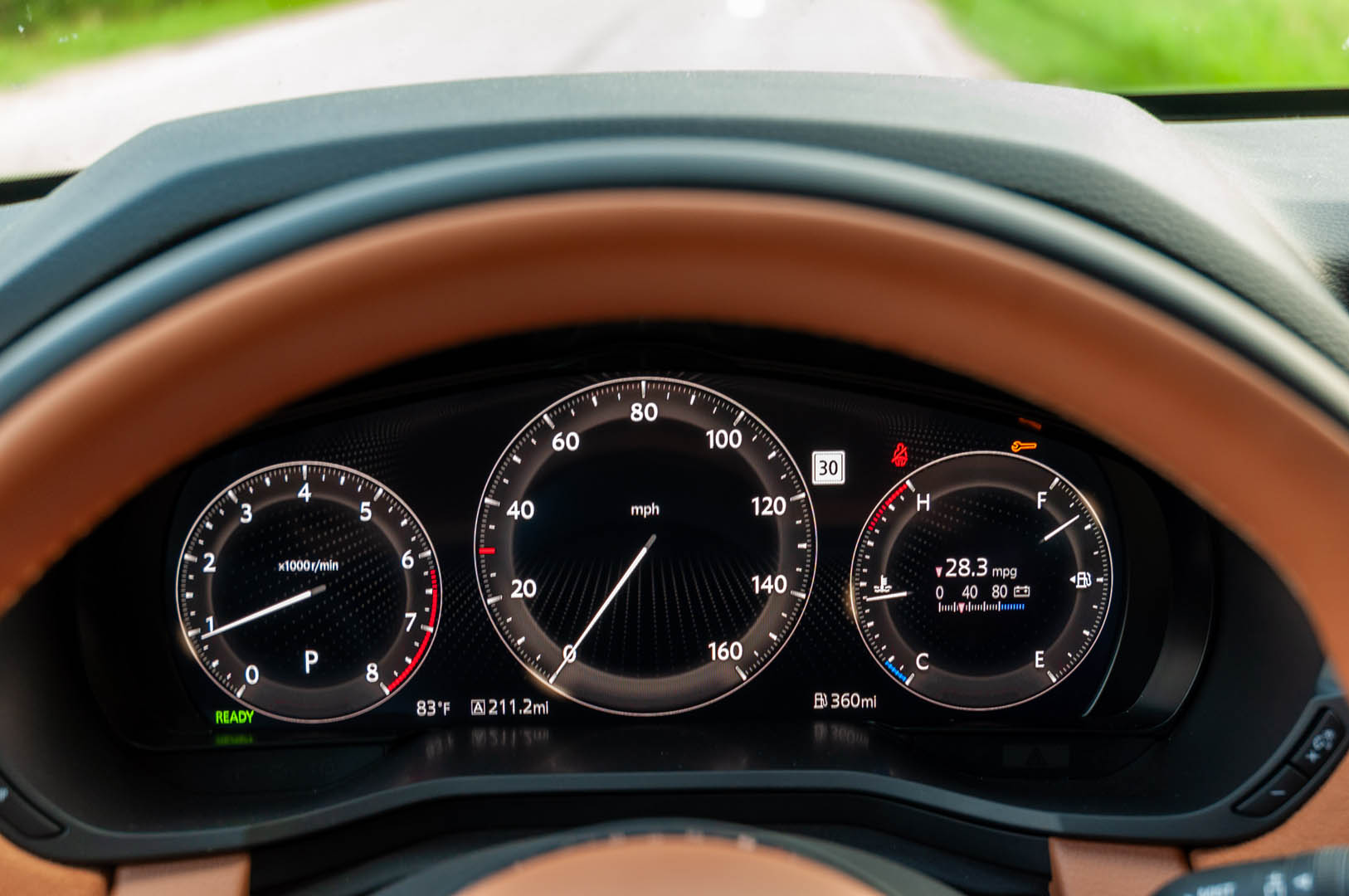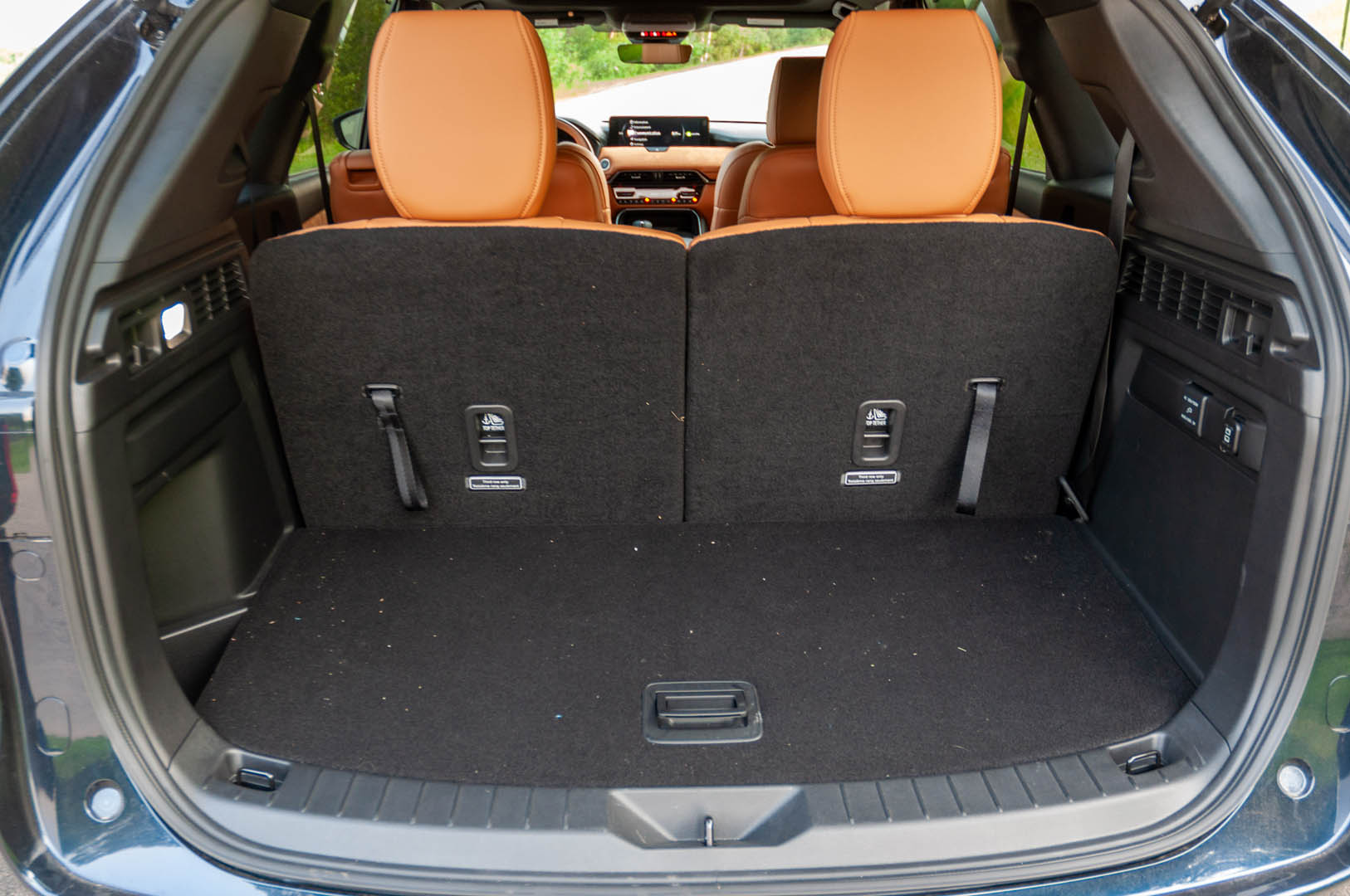 That turbo-six is also surprisingly efficient with an EPA rating of 23 mpg city, 28 highway, and 25 combined. That bests most of the V6-powered competition, and those ratings are accurate in the real world, too. Over 226 miles of mixed suburban driving, the CX-90 averaged 24.1 mpg. During a 208-mile road trip going over 70 mph, the three-row Mazda averaged 28.6 mpg.