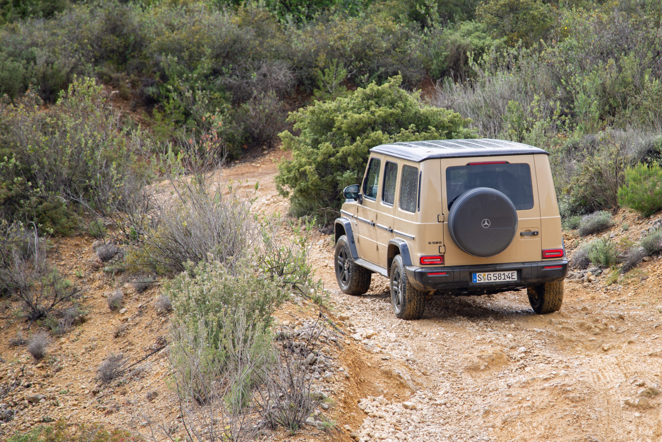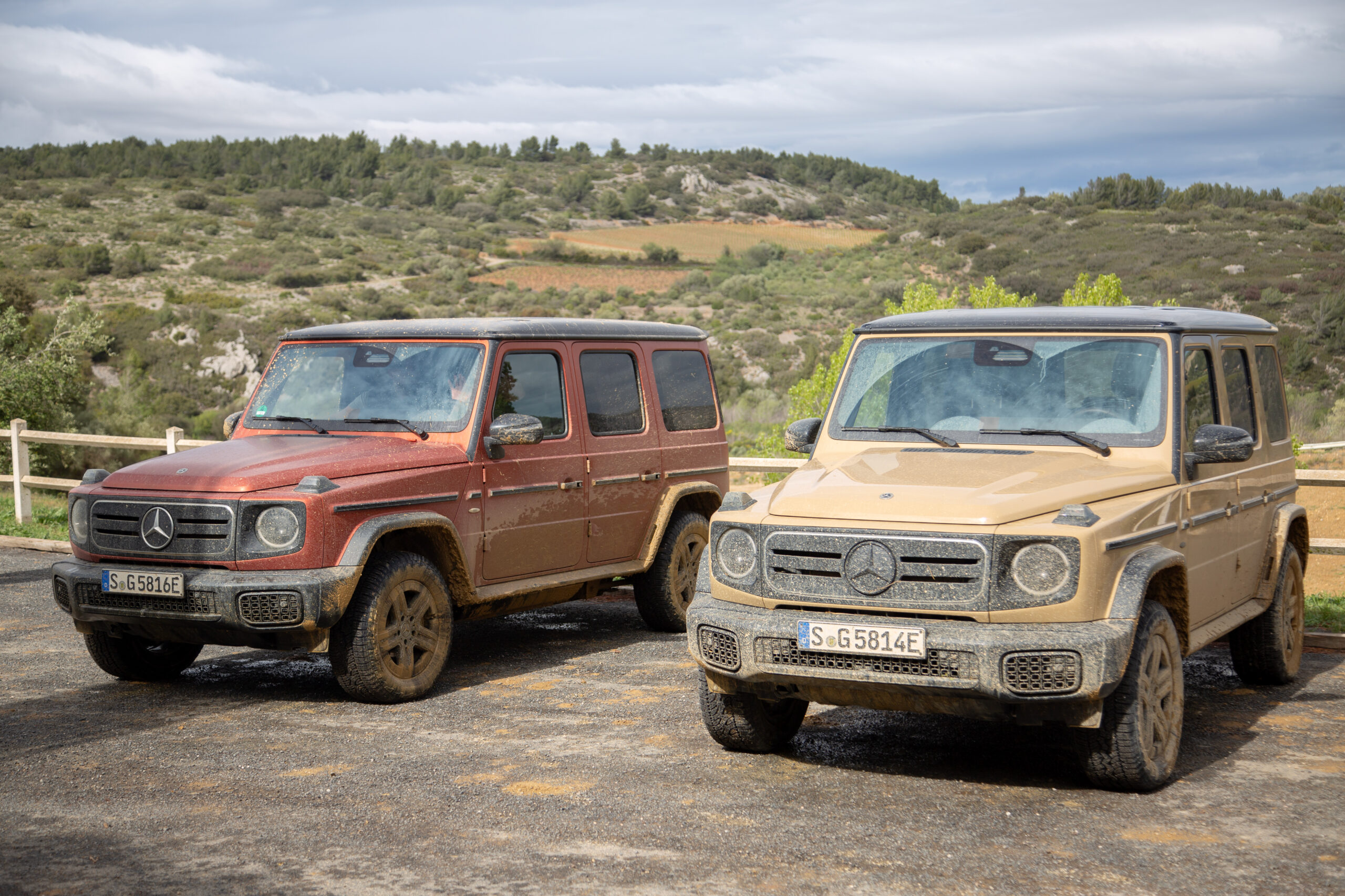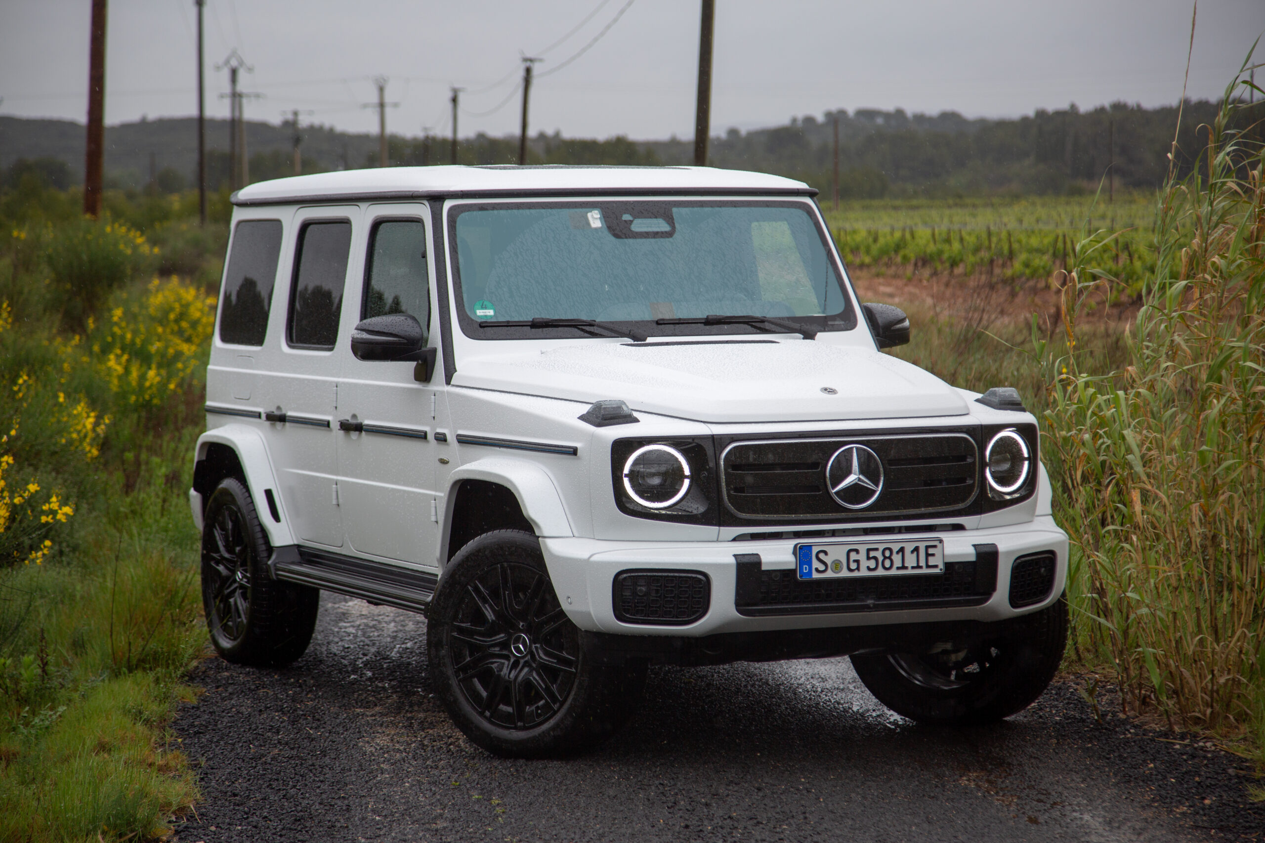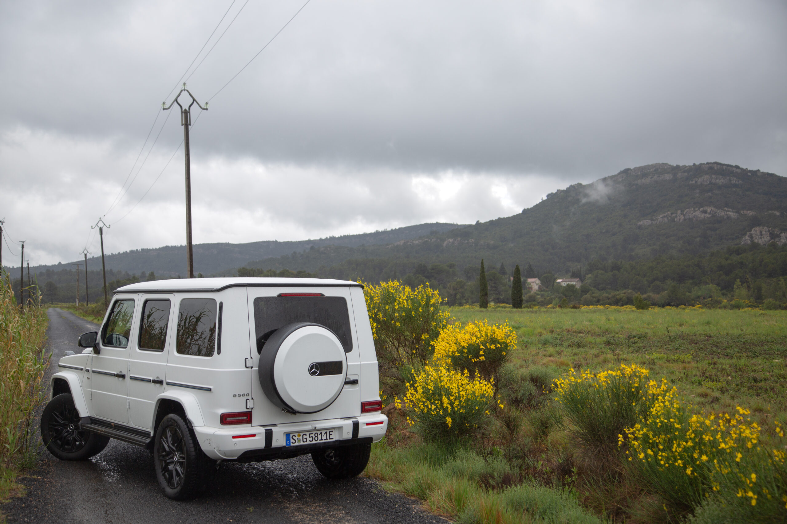 To show off the capabilities of the new G’s, Mercedes unleashes me on off-road trails carved into the mountains outside a winery in southern France. (Admittedly, it’s hard to find a place in southern France that isn’t next to a winery.) The first lap is in an inline-six-powered G500, the second in the G 580—and it’s clear within a hundred yards that the electric G-Wagen is superior. The combination of immediate electric torque, an independent motor for each wheel, and quick-witted computers to control the whole setup eliminates the need for locking differentials, enabling each contact patch to mete out exactly the force needed to keep the G moving. If you’re used to off-roading, the ease with which the G580 gets things done feels spooky.