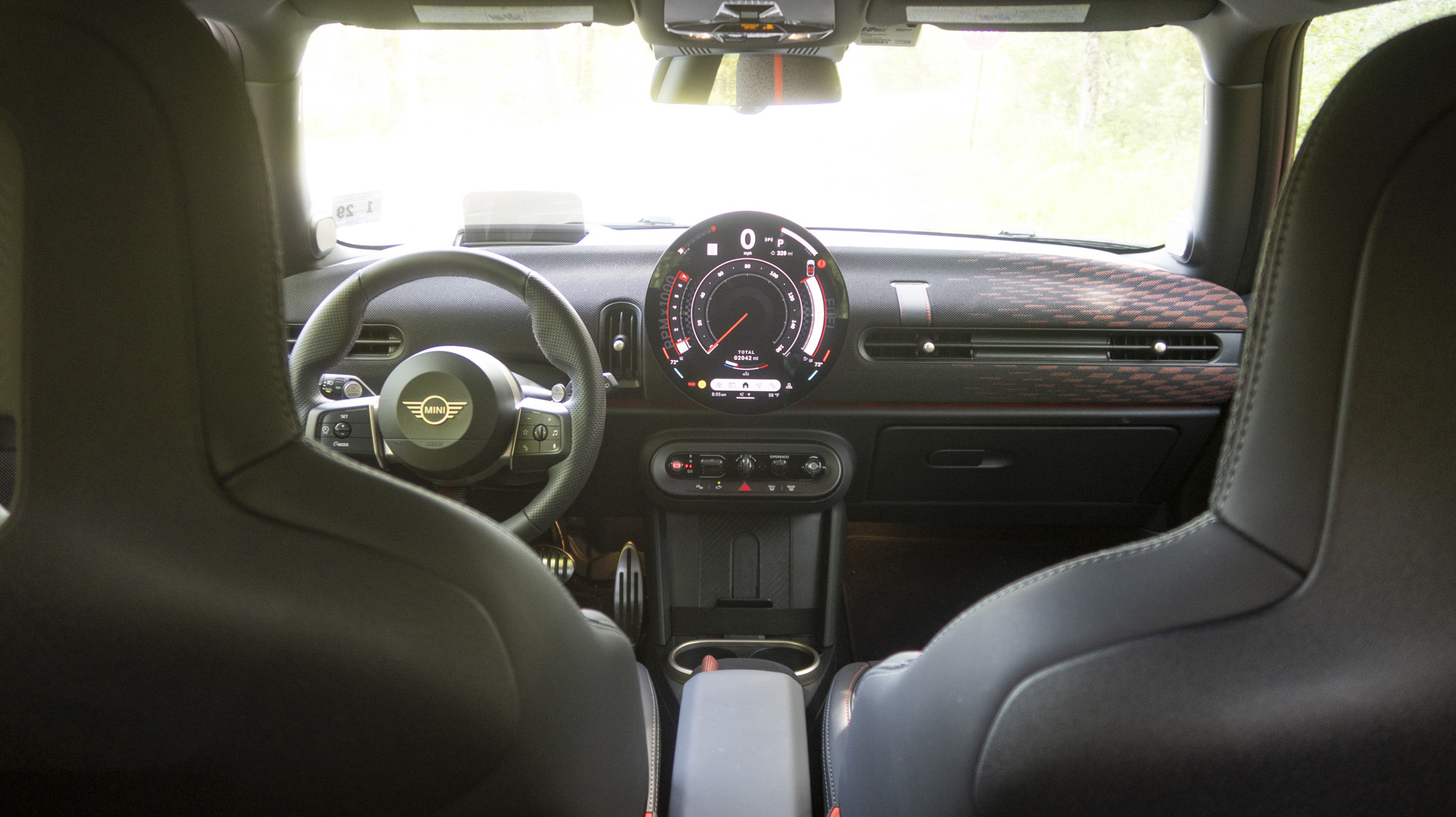 Even some of the conceptually cooler features are hampered by manufactured digital drama. There’s a Boost mode that Mini claims will crank up boost pressure to increase power by 10 percent for 10 seconds, which is a neat idea, but when you activate it, the screen shifts to an insanely distracting animated countdown from 10—every second, the background changes and moves. What the heck were they thinking?