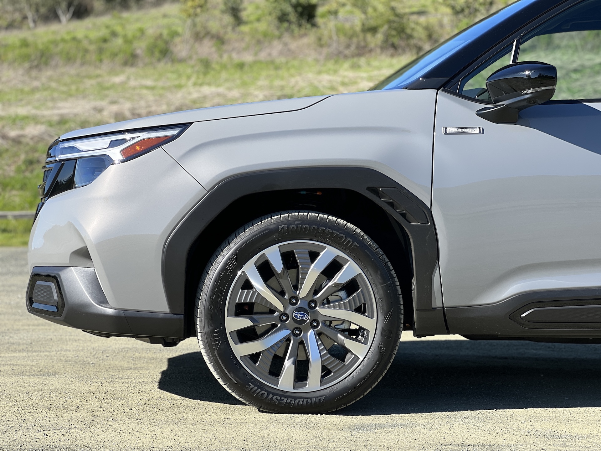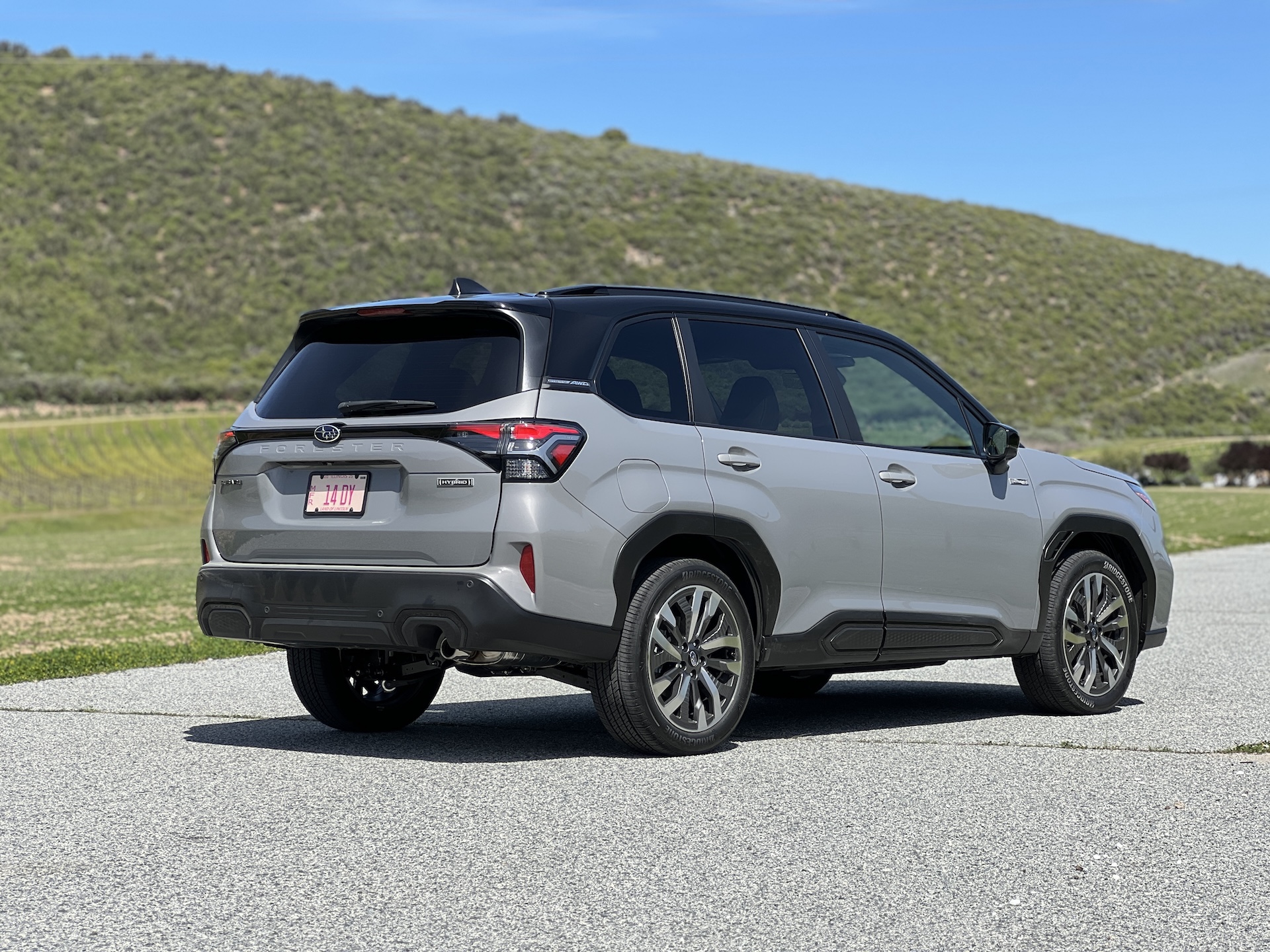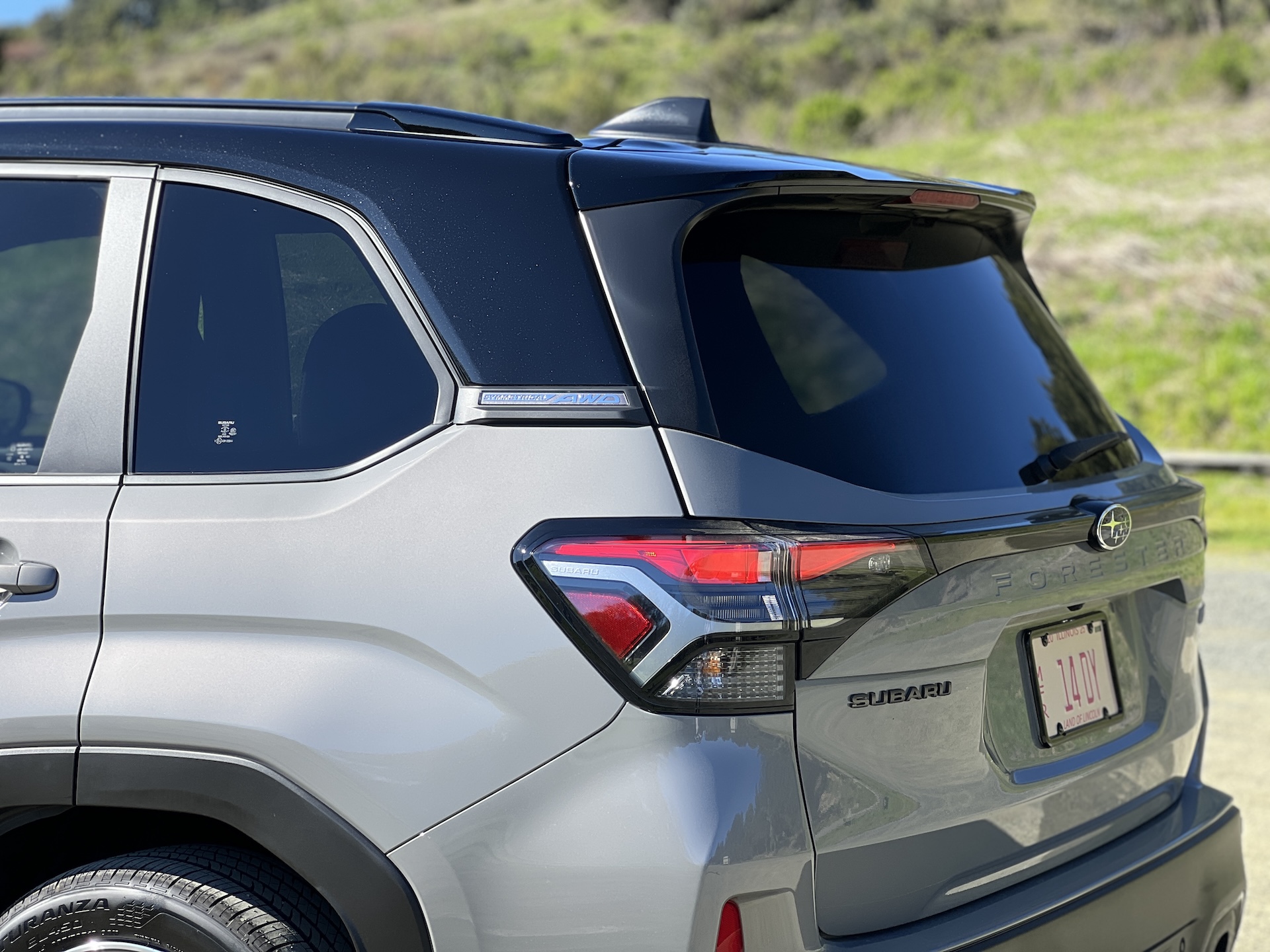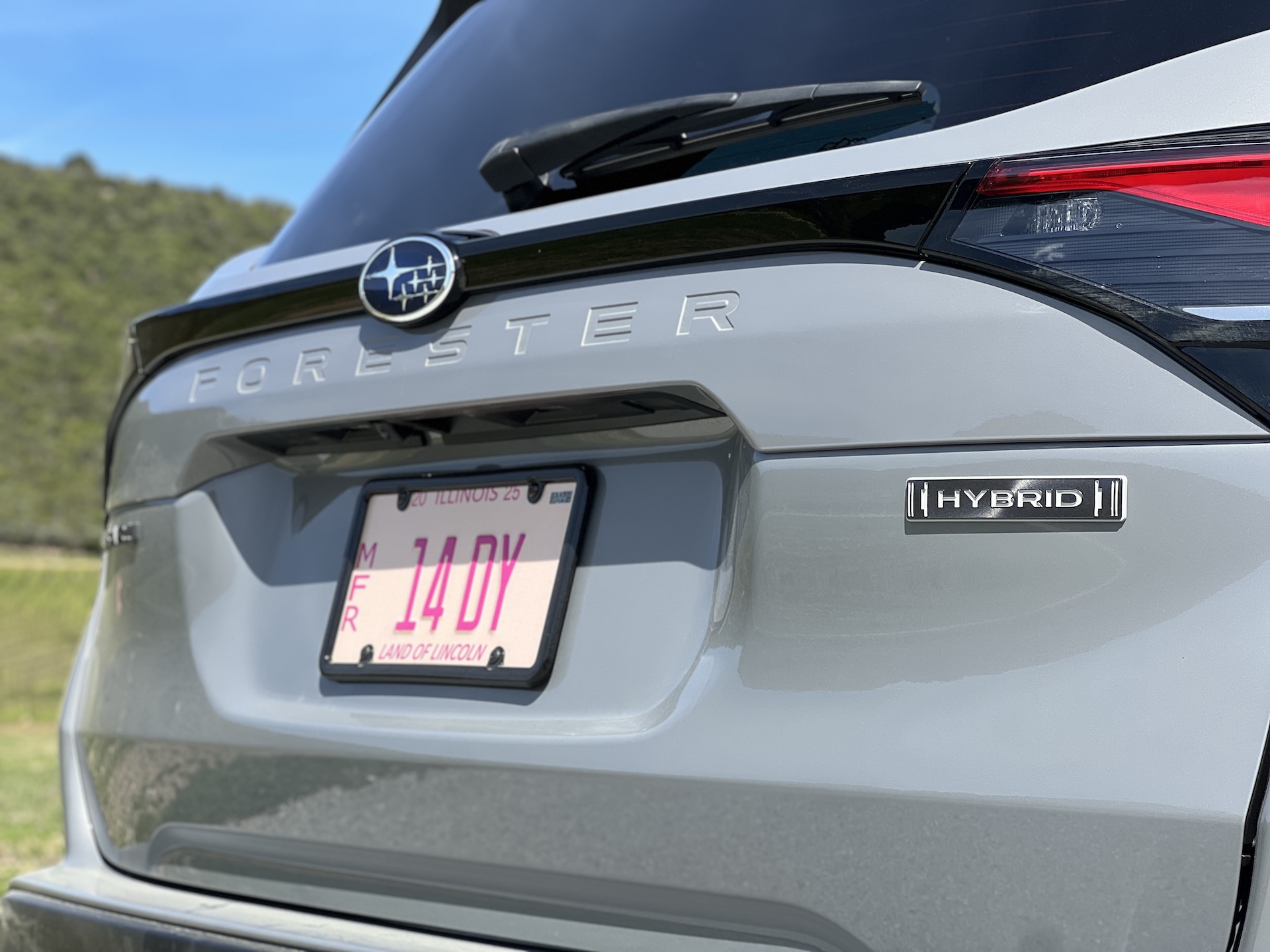 The design differences between the gas and hybrid Foresters are subtle. Its “HYBRID” badges are the most telling, but the HEV also gets Daybreak Blue as a paint choice, 18-inch wheels are standard, and Touring models can be optioned with a contrast black roof.