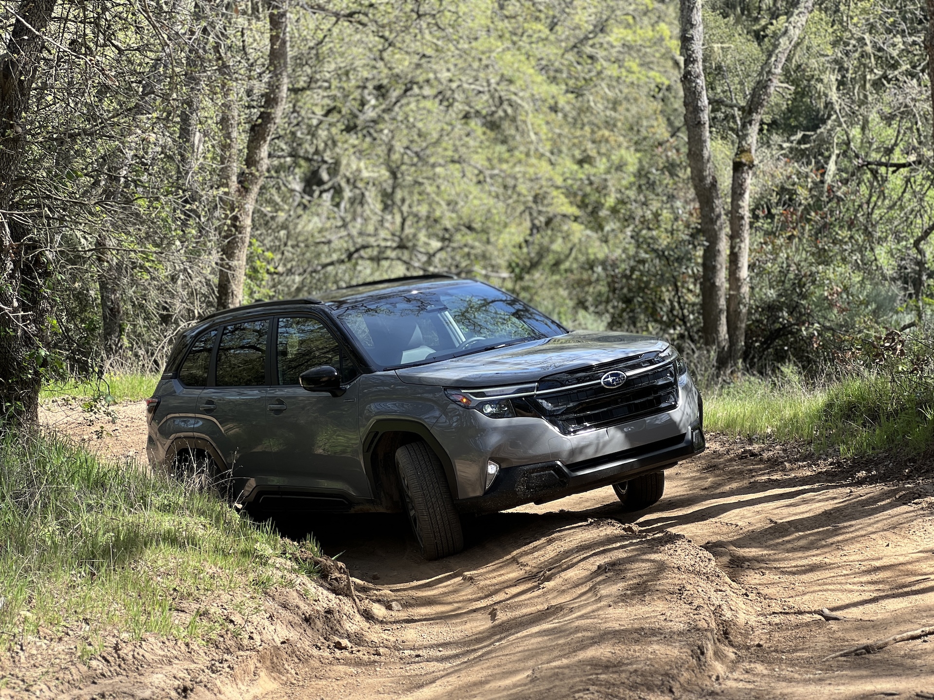 The good news is that everywhere else, the Forester was more refined and ridiculously quiet. Improved sound deadening and updated suspension are definite highlights. Also, damn, is the Forester really good at that off-roading stuff. Over about nine miles of dirt tracking and rut climbing in Hollister Hills, the vehicle felt right at home.