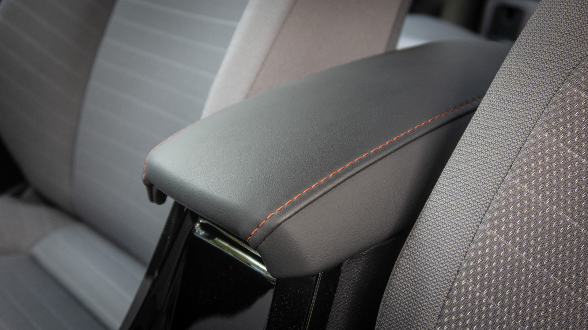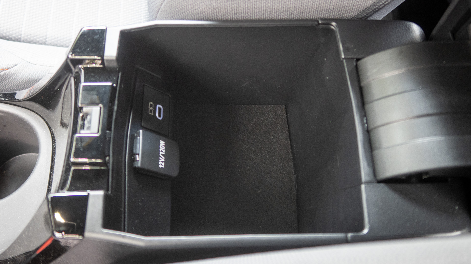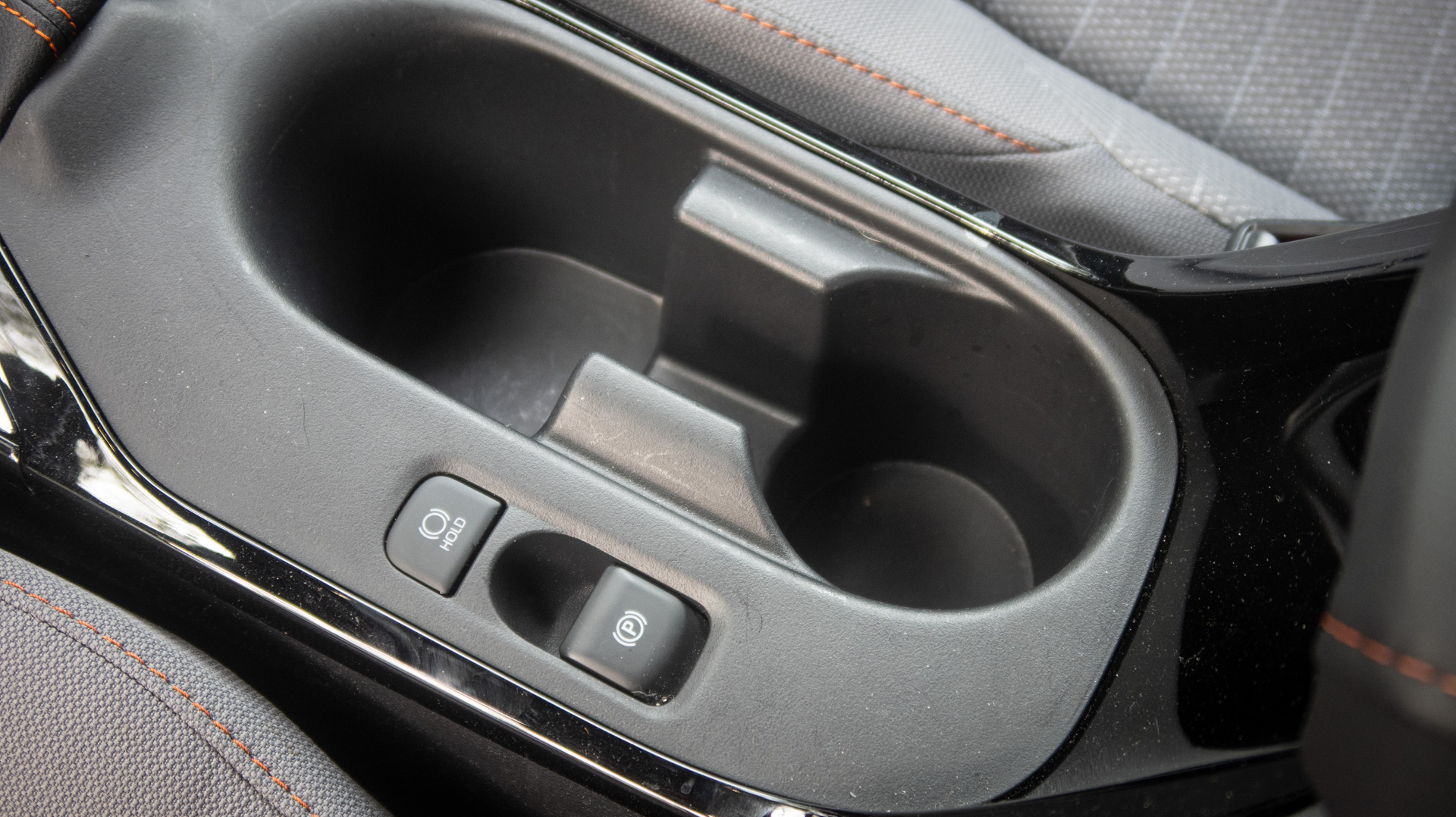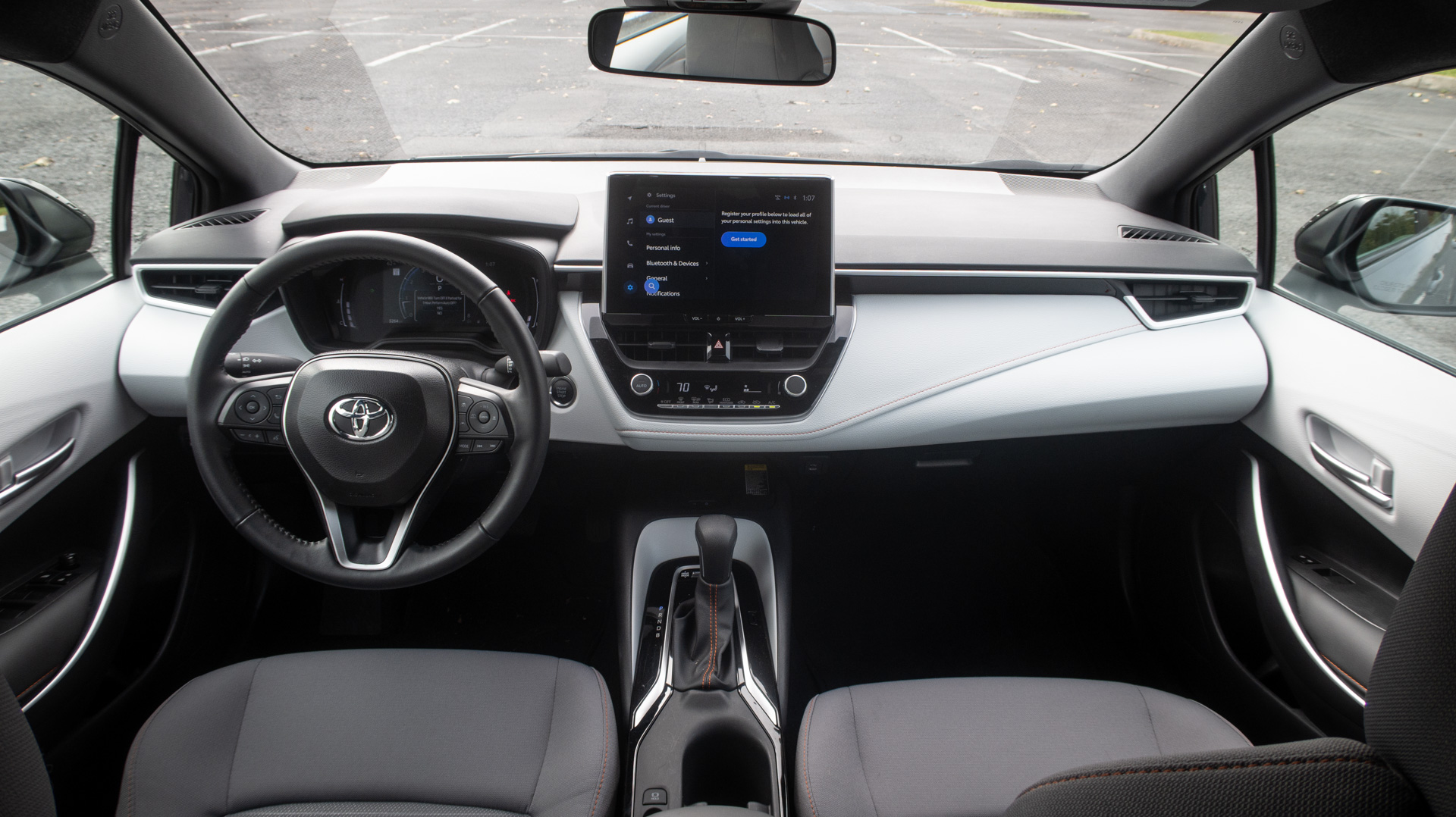 The Corolla’s seats are OK, not impressive, not bad, and I’d give about the same assessment to most of the cockpit’s looks and layout. Material choices feel reasonably robust, and a small contribution of orange piping goes a long way toward making the interior look and feel better. A big, plastic tombstone protrudes from the middle of the dashboard to hold a screen for smartphone connectivity and infotainment, which I absolutely hated.