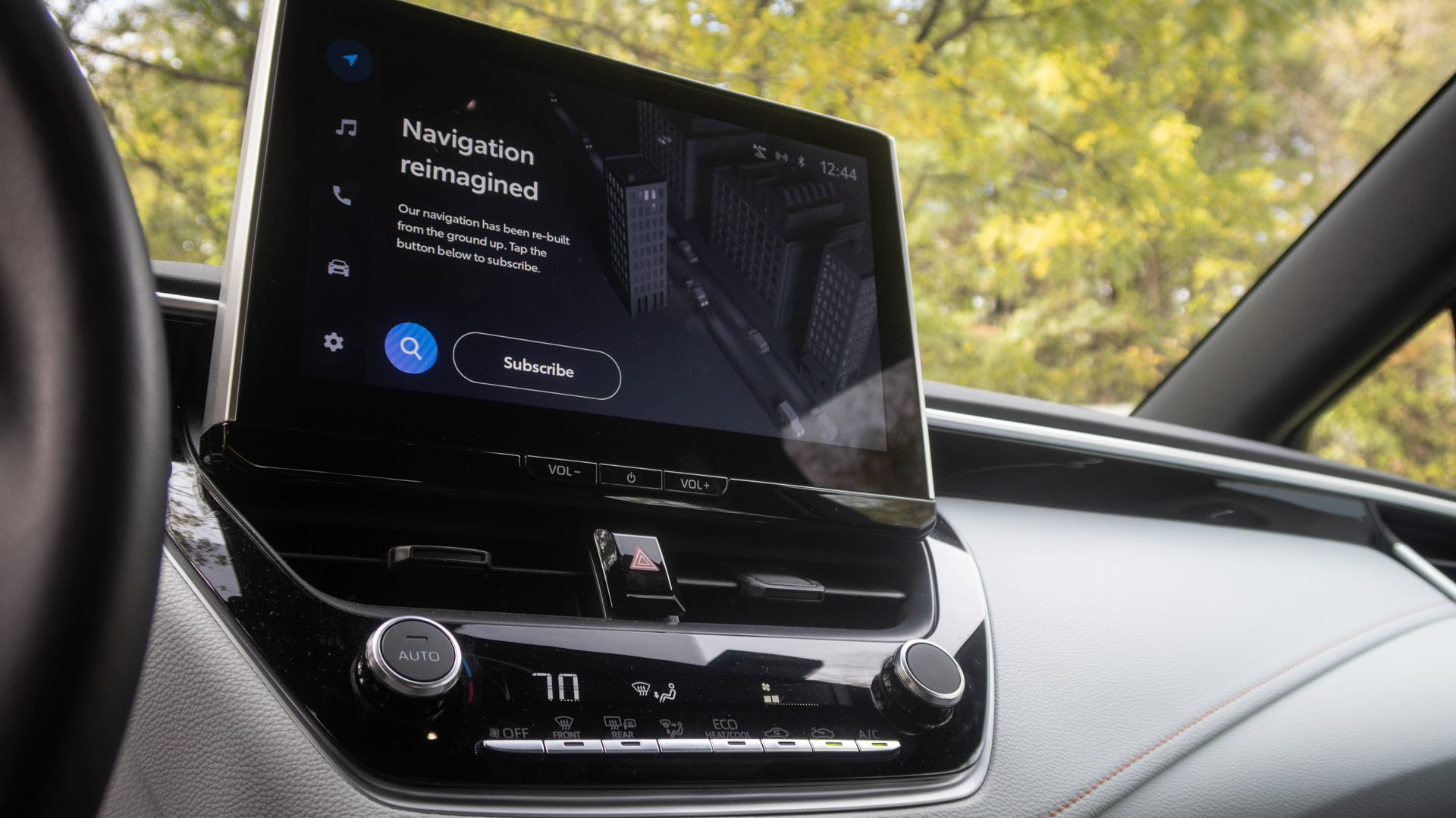 Getting underway is an anodyne experience, no matter how hard you press the gas pedal. When I accelerated normally, I was satisfied. I didn’t feel like there was any trouble getting to socially acceptable town and highway speeds. But when I floored it, the sensation of acceleration was somehow exactly the same. Except when I was running at wide-open throttle, the Corolla’s CVT sustains an off-putting meowing sound.