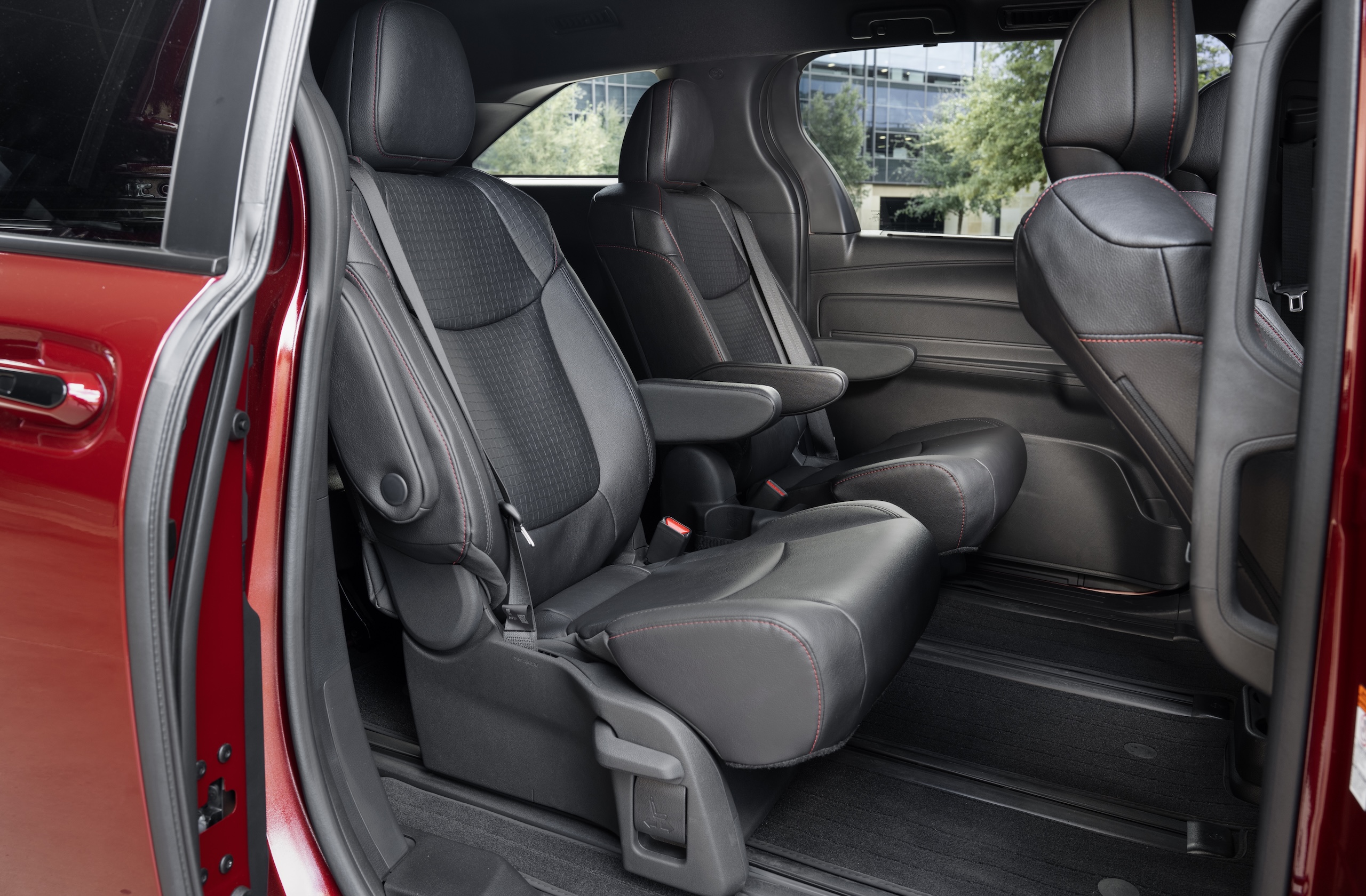 Sure, there are styling updates—for example, the XSE model scores a new black inlay over the headlights, and Toyota says that its unique honeycomb grille helps bolster the model’s “sporty” vibe. But even in this racy Ruby Flare Pearl hue, the Sienna feels pretty anonymous in rush hour traffic. And I’m totally fine with that. If you’re buying a minivan to get noticed, you’re doing it wrong.