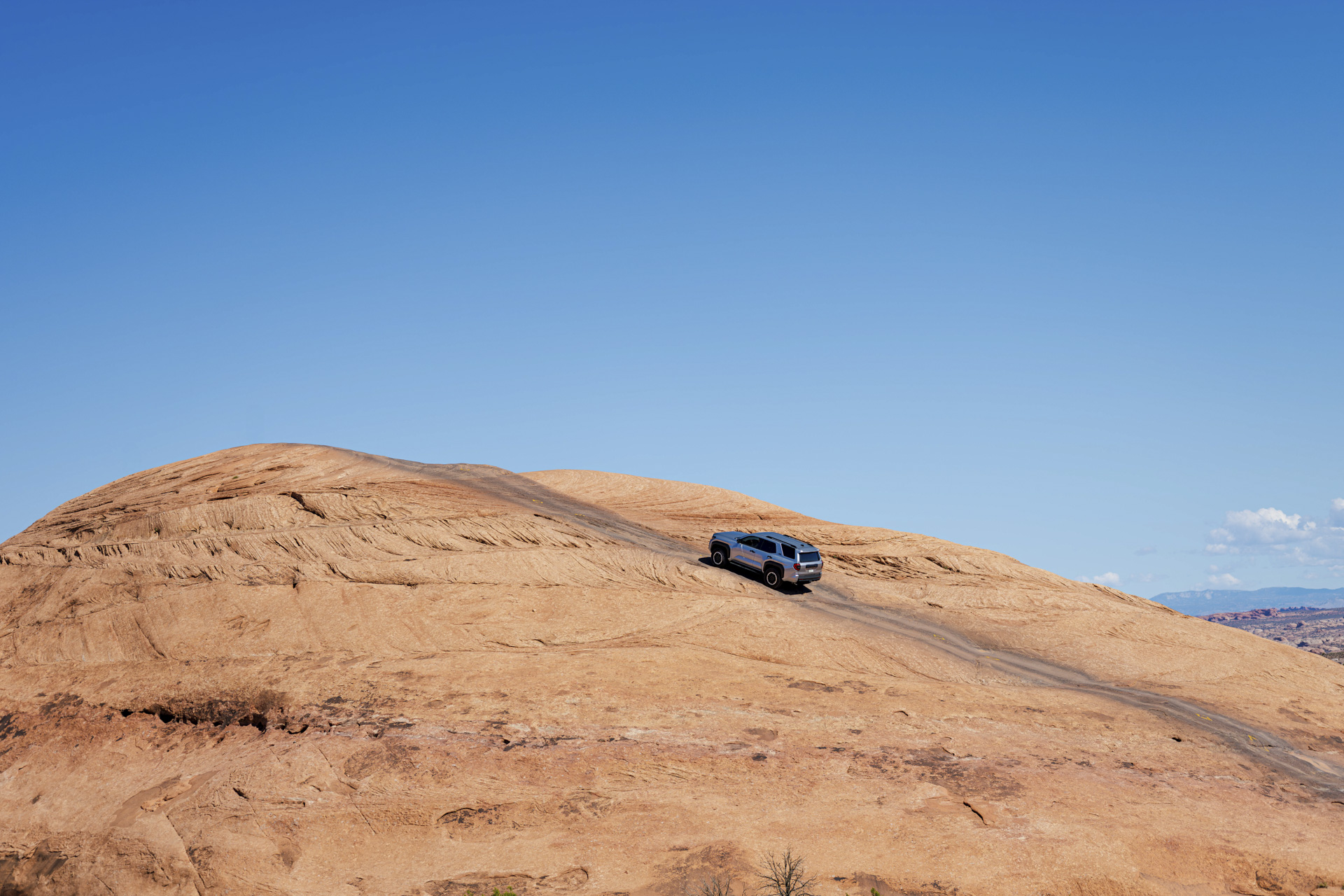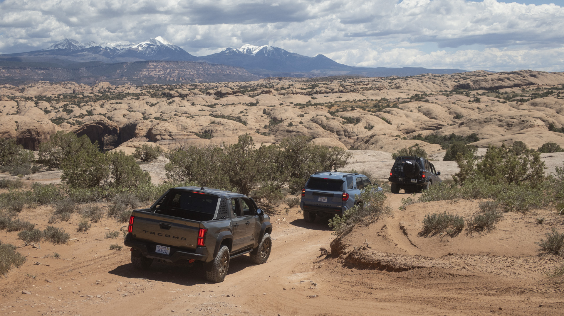 The Toyota Land Cruiser, 4Runner, and Tacoma have been adventure-driving exemplars for decades, but the current gen of each is still fairly new. Ol’ reliable V8s and V6s have been dumped for turbo fours and hybrid systems; screens have replaced analog dials. But the off-road capability is still there, as we learned on a unique expedition wheeling all three trucks together on Moab’s famous slickrock.