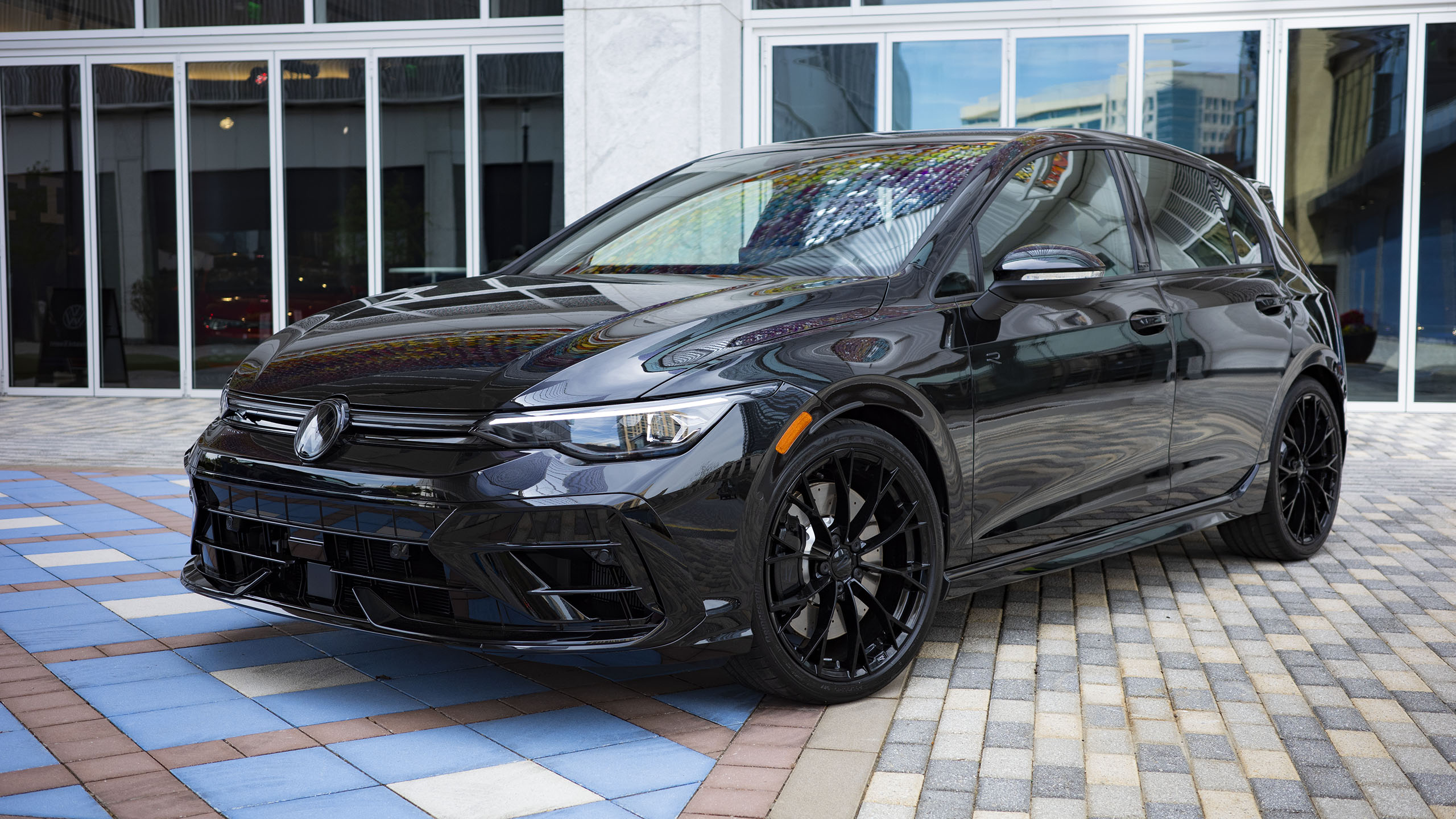 - Black Edition: The $49,640 Black Edition is purely a cosmetic option that does exactly what it says on the tin. Everything, from emblems and mirrors to brake calipers, exhaust pipes, and those otherwise eye-catching forged alloys, is “blacked out.” In the interior, you get genuine carbon-fiber trim. Personally, I think full-black cars are boring, and the Golf R is already a pretty unremarkable-looking vehicle, so I don’t know why anyone would choose this. But if you want to be invisible, here you go.