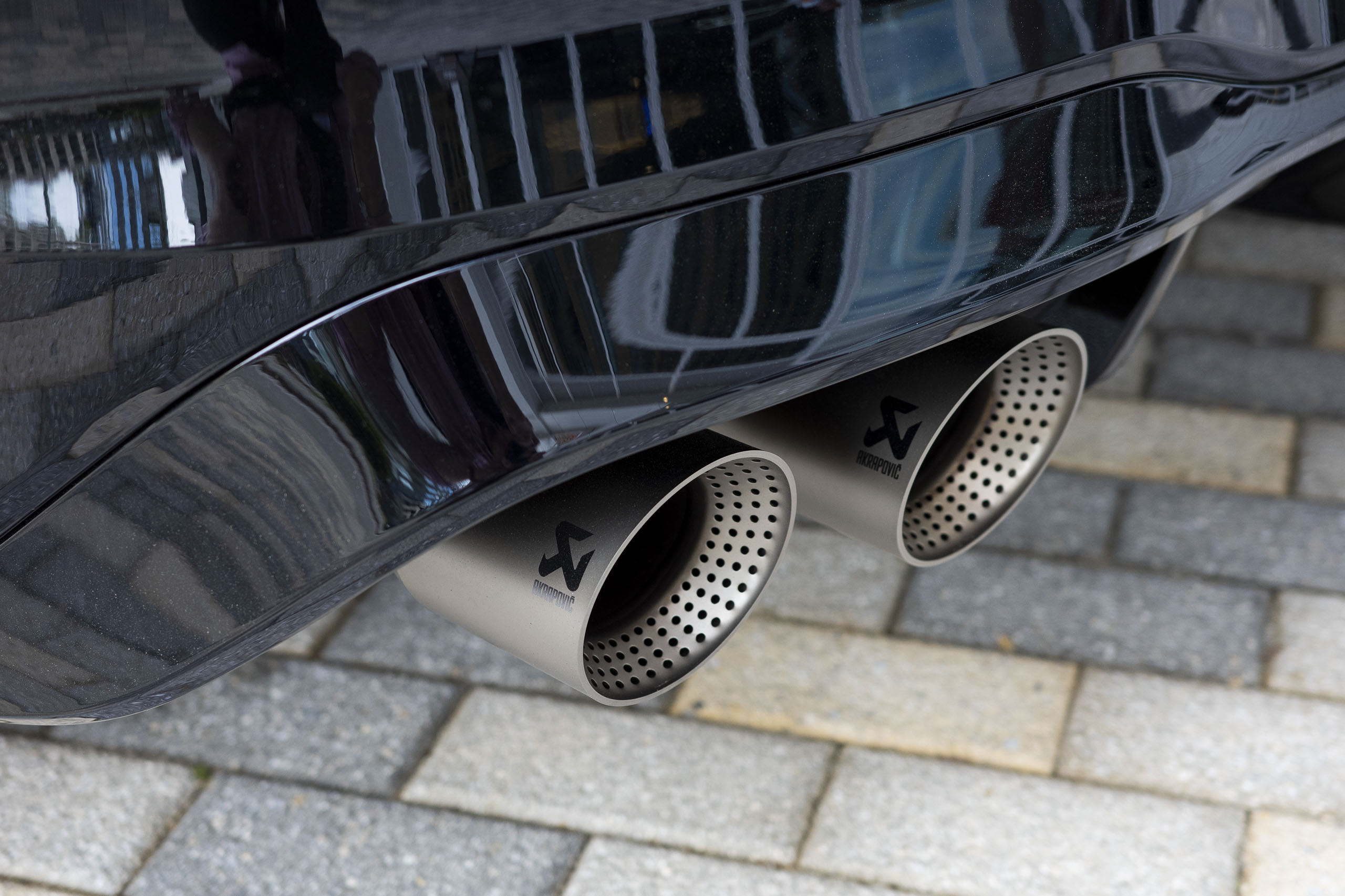 - Euro Style Package: The Euro Style Package can be added to either the normal car or the Black Edition for an additional $3,795, raising the total price to $52,120 or $53,435, respectively. This option deletes the standard sunroof and most power adjustability of the seats, and replaces the leather upholstery with VW’s suede-like ArtVelours material and cloth inserts. The Euro pack also adds an Akrapovič titanium exhaust, which does nothing for performance but does make the hot hatch sound crackly and sonorous, especially in Race mode.