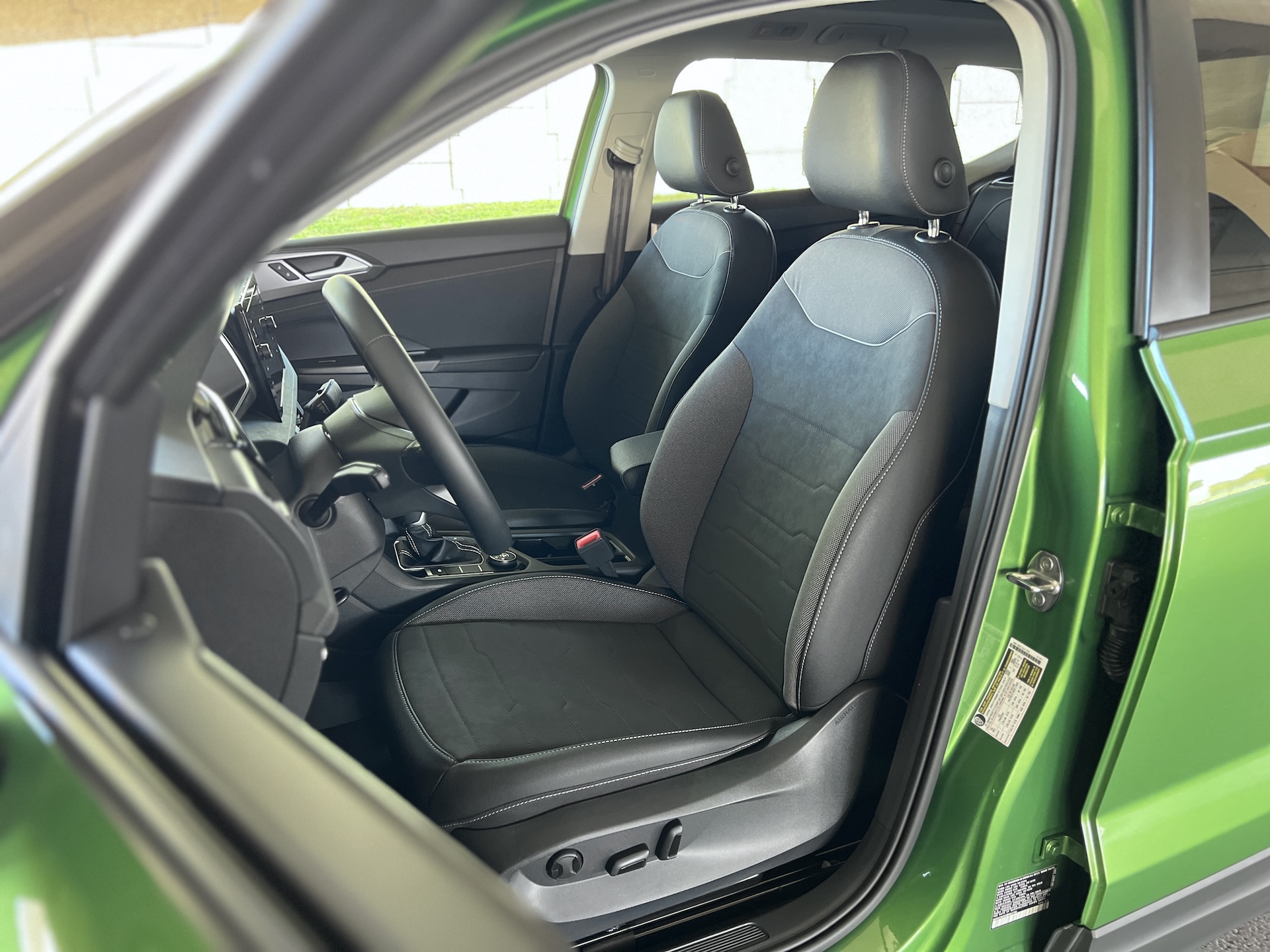 The dash vents have been redesigned with a similar vibe to the headlights. Not sure if that was intentional, but the vertical style adds a bit of personality. But it will also remind you that the old Taos’ simple climate control knobs are gone. In their place is a touch-sensitive “Climatronic” panel. The new setup may look cleaner and fancier, but knobs are intuitive and don’t require me to look down while adjusting settings.