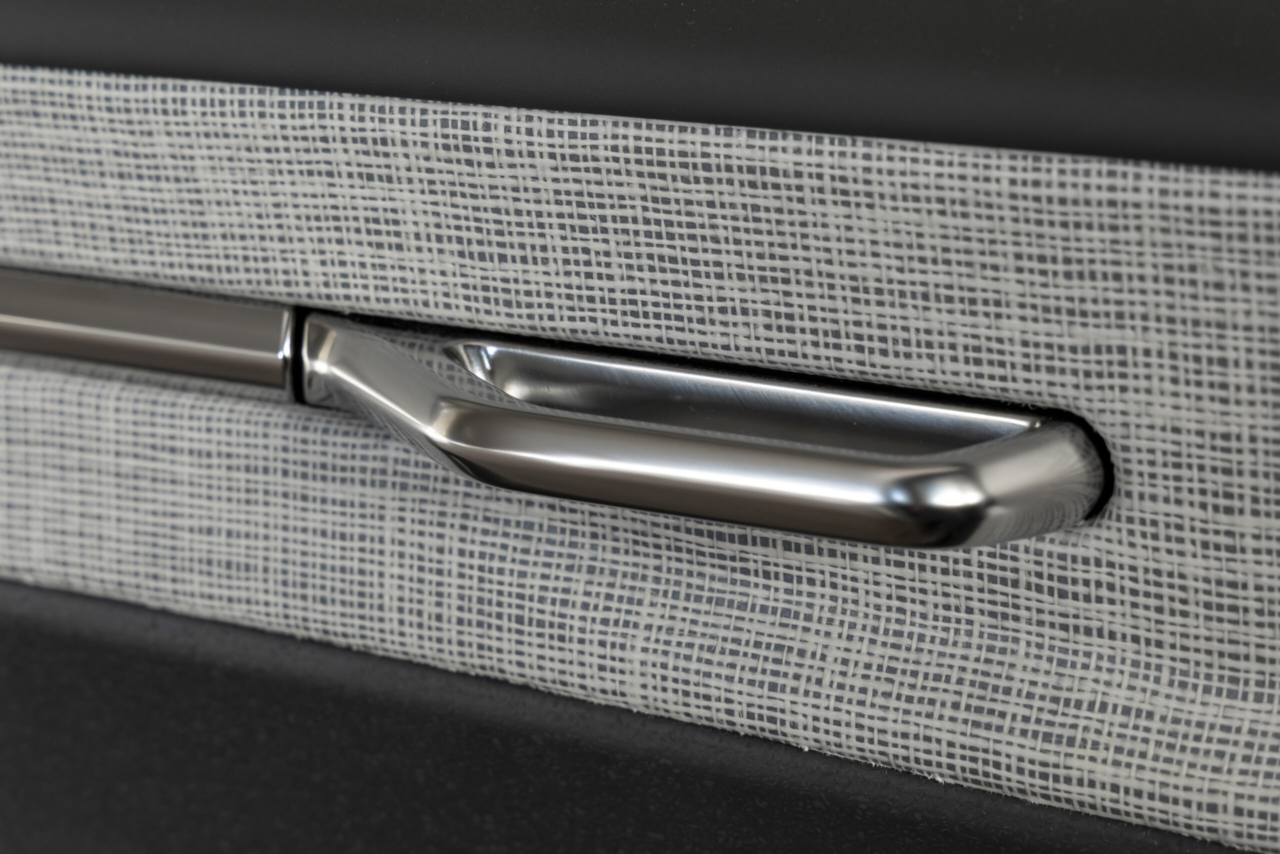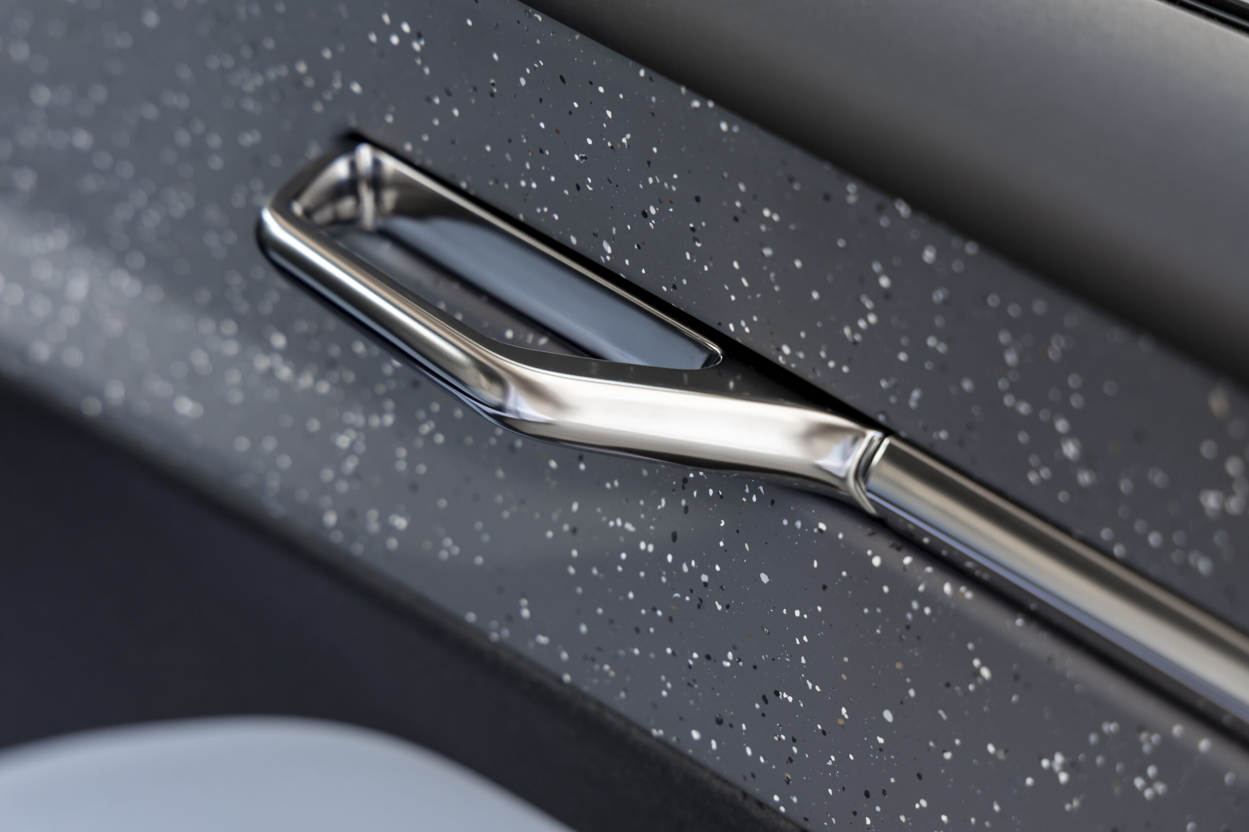 As a design, the EX30’s cabin is best described as pared-down and sustainable-chic. A “debris” trim on the single motor car is apparently made of recycled window frames while this same area is filled with a very cottagecore weaved material in the dual motor version. My favorite part of the cabin, however, has got to be those big, metal door handles that feel hefty, expensive, and high quality.