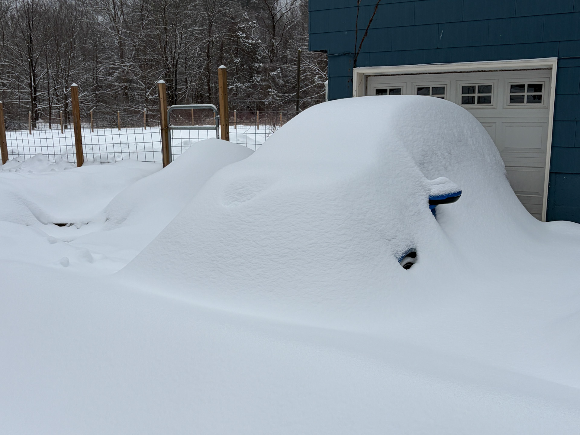 As for the drive itself, on snow-drenched roads with winter tires, the results were kind of a mixed bag. And yes, we were out in much fouler weather than you see in these photos; I was not about to leave the protection of the heated seat in the worst of the storm to snap more photos.
