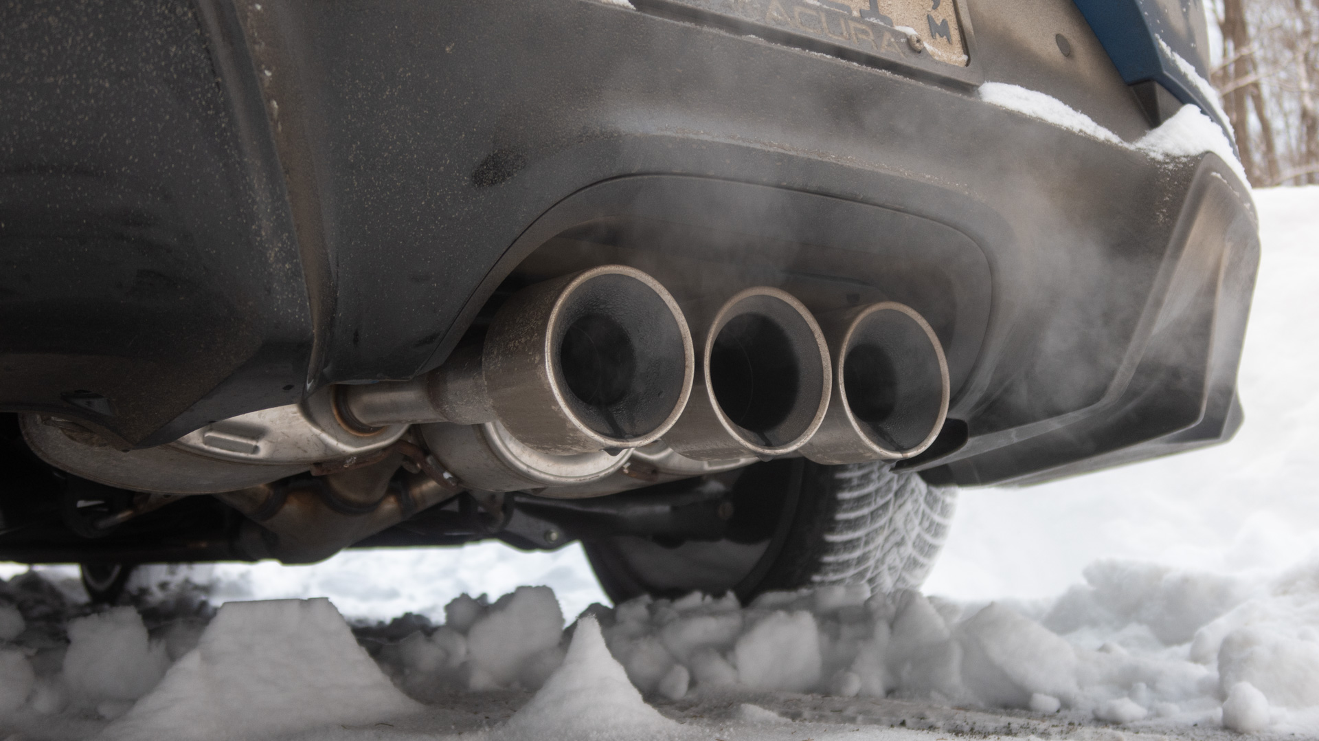 While acceleration traction was probably the most disappointing, winter braking on Blizzaks was solid. The ITS has some mean-business Brembo four-piston monobloc aluminum calipers clamping 13.8-inch rotors on the front axle, and even in low traction, the Bridgestone tires helped the car reel itself in quickly and consistently in a straight line, which I appreciated immensely.