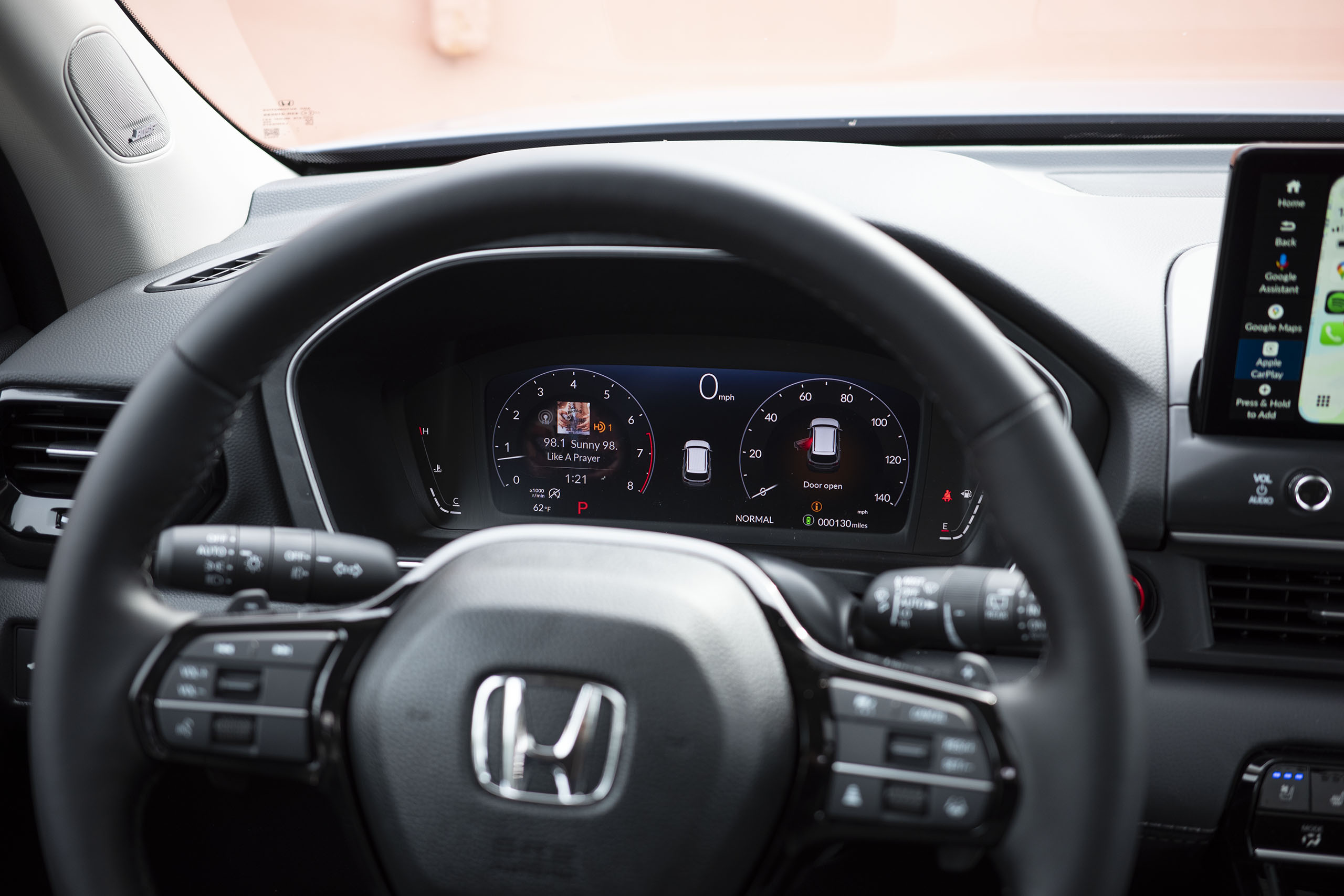 The center display was made larger in part by reclaiming space formerly occupied by hard navigation buttons and relocating the volume dial to the trim just below it. It’s resulted in a bit of a weird look, and I would’ve rather had the physical nav buttons stick around than a barely larger touchscreen, but this is the way of modern cars. The infotainment OS is Honda’s latest, and I found it sensibly laid out and snappy to navigate.