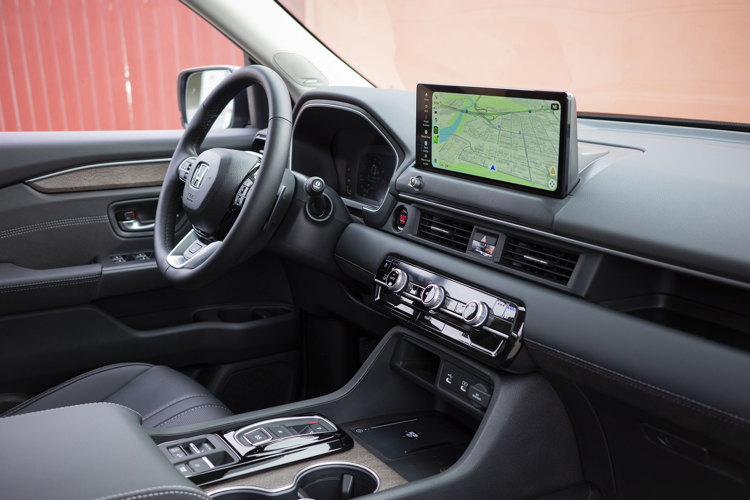 This cabin is also a quieter one, with new sound-deadening material that adds door, dash, and hood insulators to all trims, interlayer glass for the base model that previously lacked it, and enclosed fender liners on Touring and above Pilots. Honda says that altogether, these enhancements reduce interior noise by two or three decibels, which doesn’t sound like a lot, but the result is indeed a serene ride.