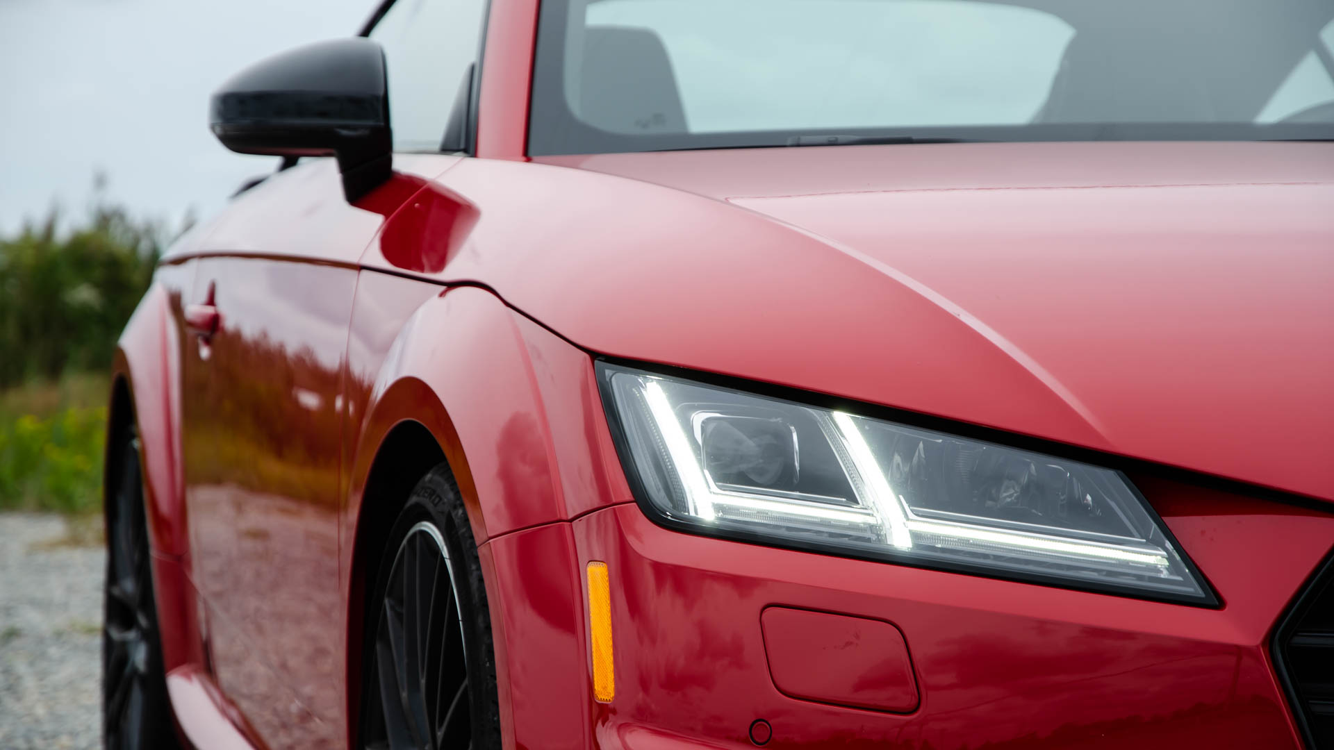 As I walked out of my front door, the Tango Red 2023 Audi TTS cut through the rainy gray and planted a smile right on my face. My mournfulness quickly grew to eagerness. Not only was I going to get to drive a nearly 300-horsepower sports car with a footprint no bigger than most shoes with nowhere in particular to go, but I was going to drive it in its ideal conditions: rain.