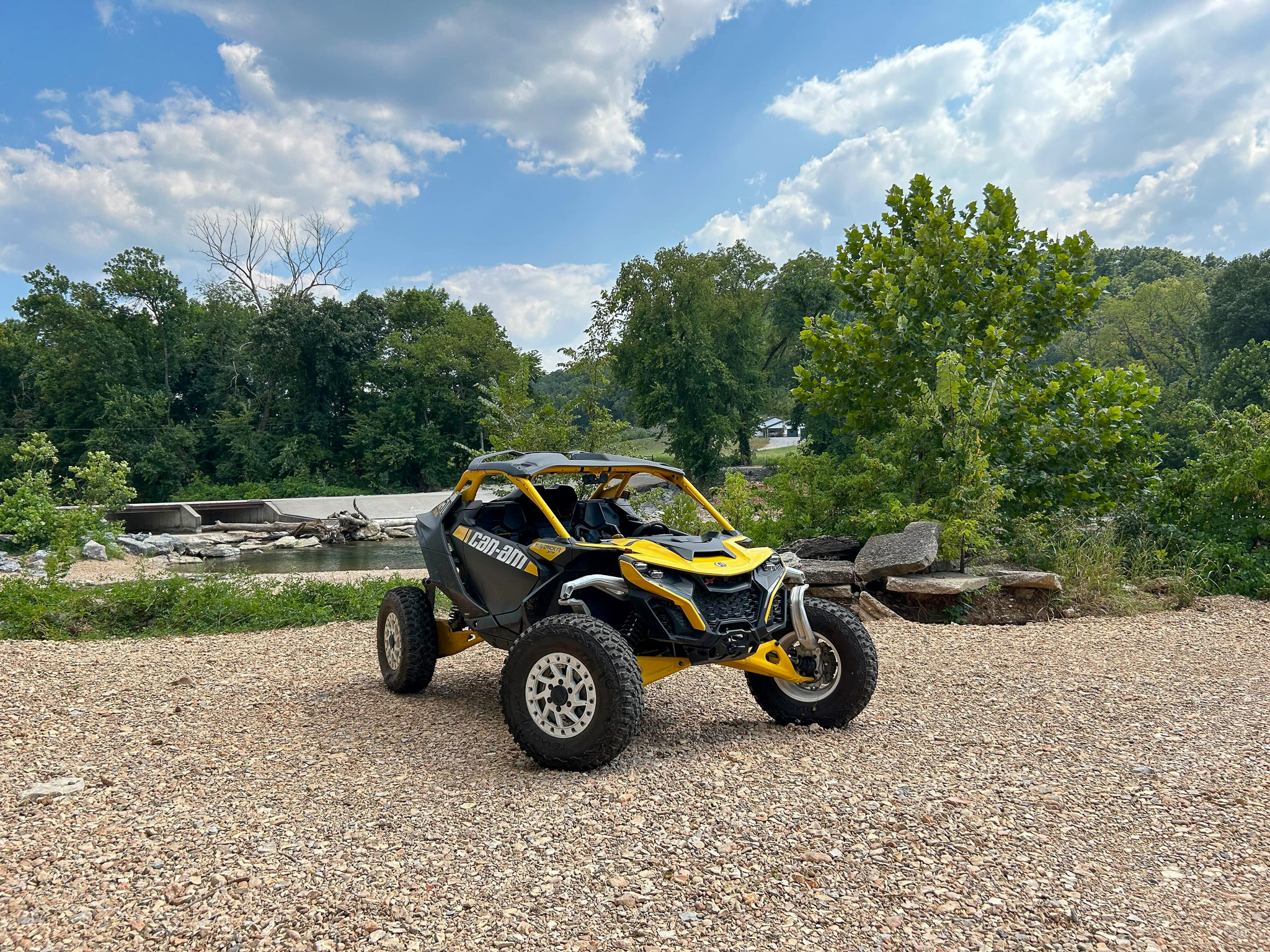 It’s so fast that if you aren’t driving in the desert, you can’t get everything out of it even if you are Travis Pastrana. The top speed is limited to 93 mph, but where I live in the Missouri Ozarks, there’s not enough room to hit that. Instead, you’re left flabbergasted that it’s possible to hit 75 mph on short straightaways while barely slowing down through nasty washouts that would wreck a car at anything more than 10 mph. That tall-knuckle suspension juts up into your line of sight more than you might expect, further supporting the idea that the Maverick R is simply another breed.