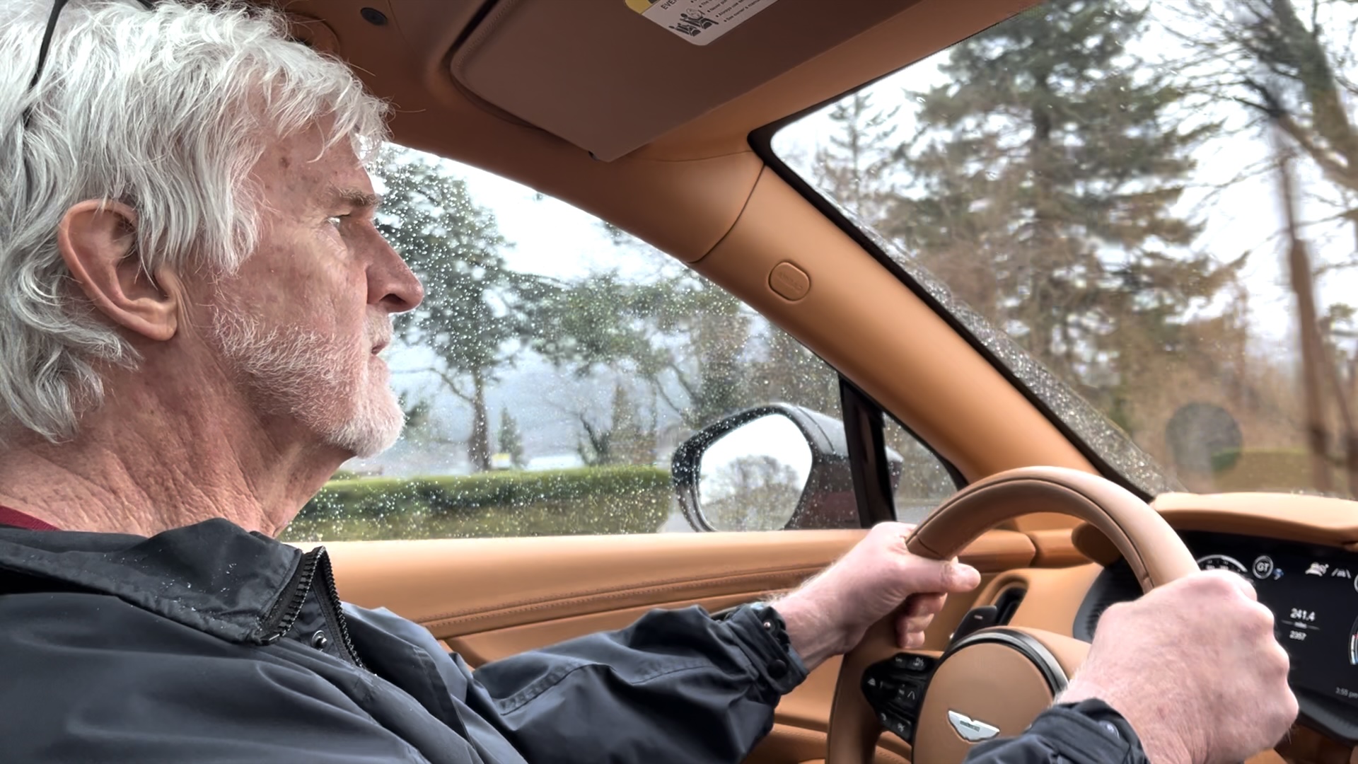 We set out on Interstate 84 east of Portland, up the fittingly gorgeous Columbia River Gorge. Dad’s enamored with everything but my brisk driving, from the design and craftsmanship to the sound stage-quiet cabin pierced only by the AMG V8. He later tells me he was hunting for a hidden red button, “because Freud was onto something when he said that for a young man to mature and individuate he must jettison the father.” Once traffic thins, I find a place to pull off and do something I’ve been waiting for longer than I can remember: Hand dad the keys to an Aston Martin.