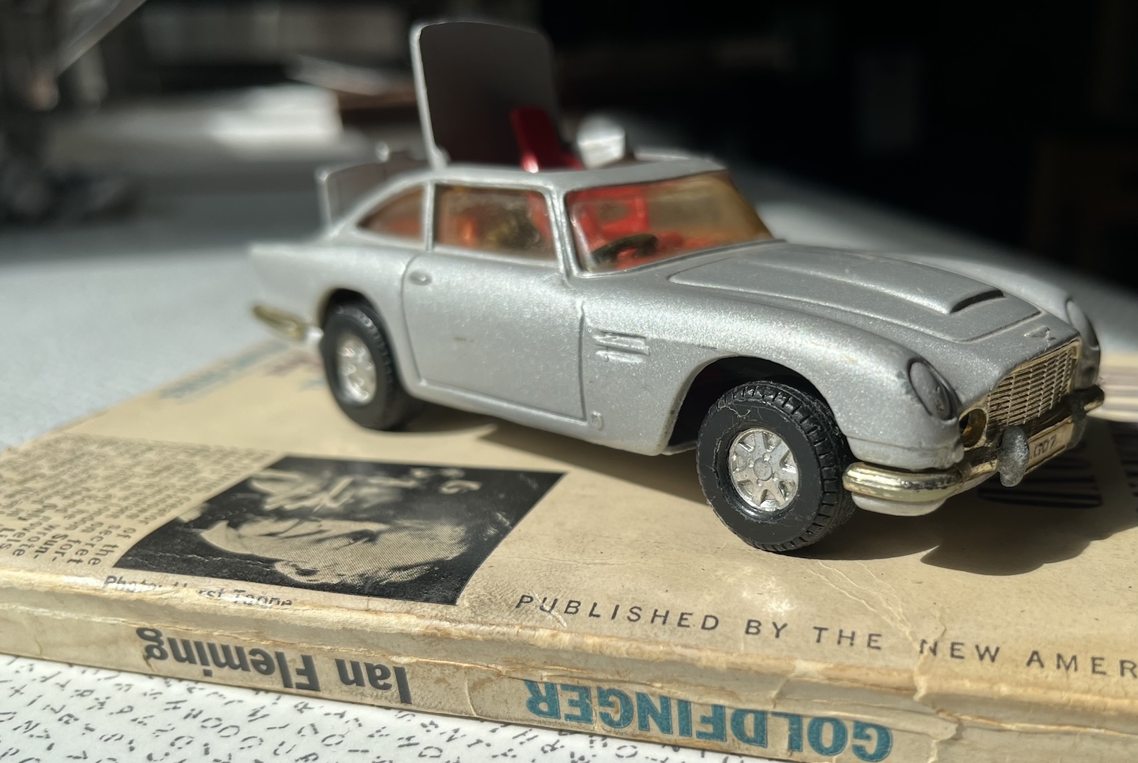 “In 1964, nobody thought much yet about motion picture ratings systems, or what sitting in a dark room taking in gigantic images of ladies painted gold, lasers inching toward heroes’ crotches, or henchmen squeezed through tiny airplane windows did to impressionable minds,” my dad said. “Mine was warm Silly Putty and it got stamped deep. Mainly, by the Aston Martin DB5.”