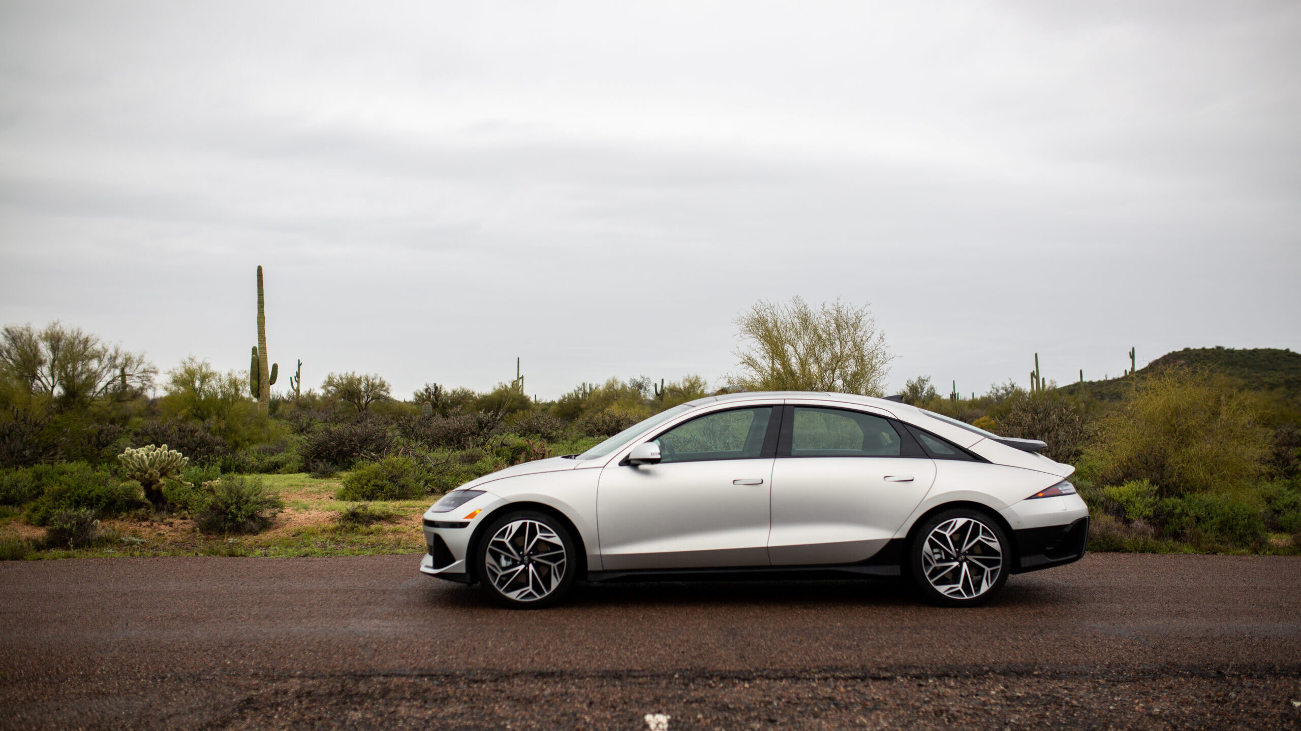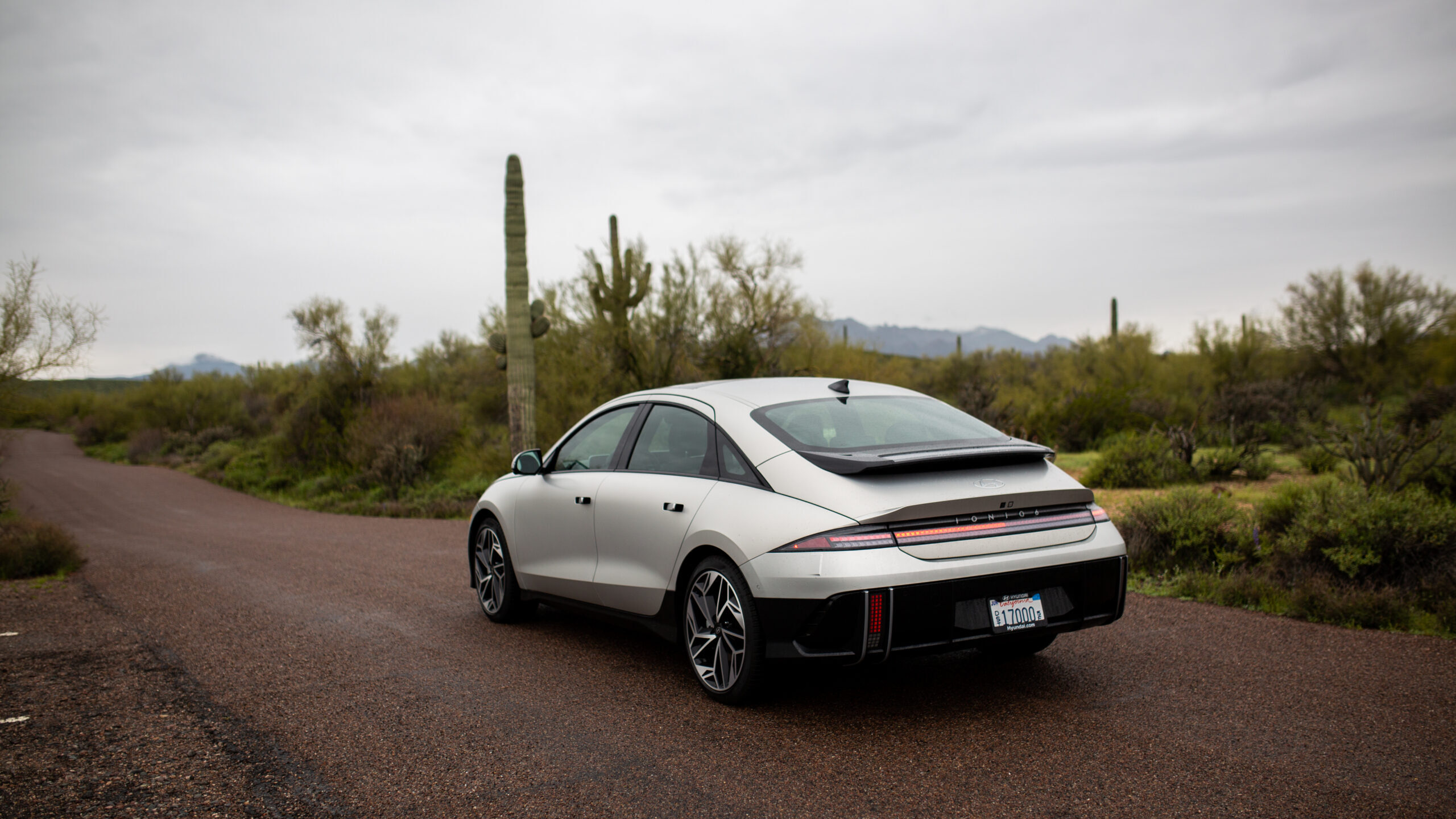 Setting off into the desert sunrise with an Ioniq 6 Limited AWD, it was fairly clear that my 150-mile round trip into the mountains and valleys of Arizona was going to be swathed in isolated comfort. This was an important and appreciated test of the true range of the Ioniq 6, and though the EPA-estimated range of my tester was 270 miles, the dash showed an optimistic 300 miles.