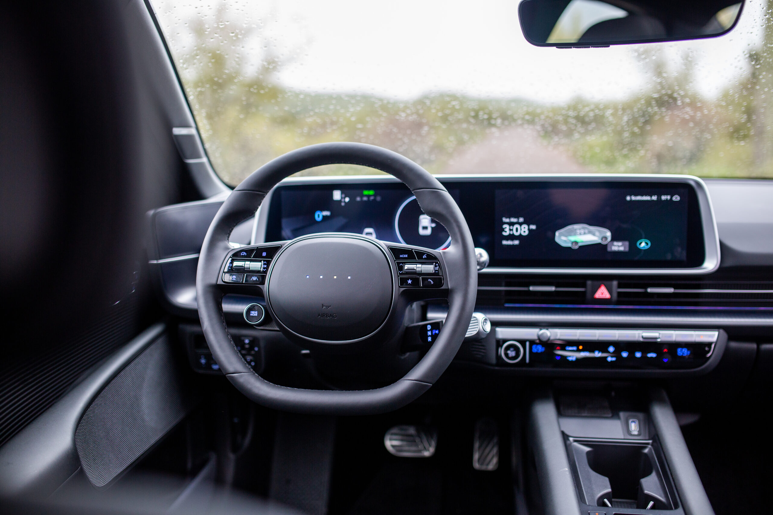 The SEL is a little more expensive at $48,815 but includes the ambient lighting, larger range-killing 20-inch wheels, the upgraded HDA II, wireless phone charging, and an auto-dimming rearview mirror. The penalty? Range is down to 305 miles with the exact same drivetrain as the SE RWD long range.