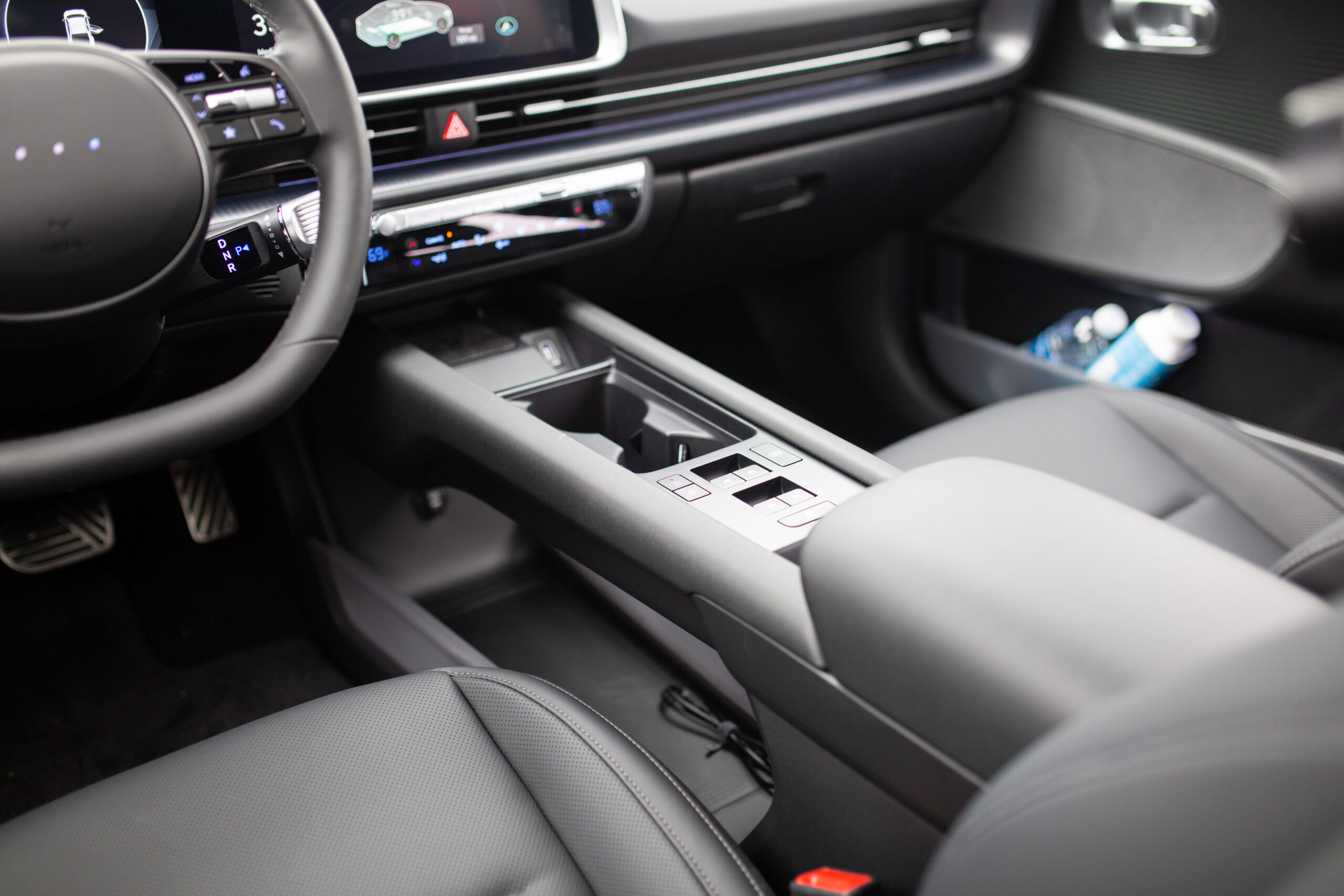 I also had plenty of room to put my many things, with generously sized cupholders in the bridge-style center console and a huge space underneath that could fit a carry-on bag. A dedicated pocket for wireless charging keeps your phone safe, while the door pockets can hold a decent-sized water bottle, though not a wide one.