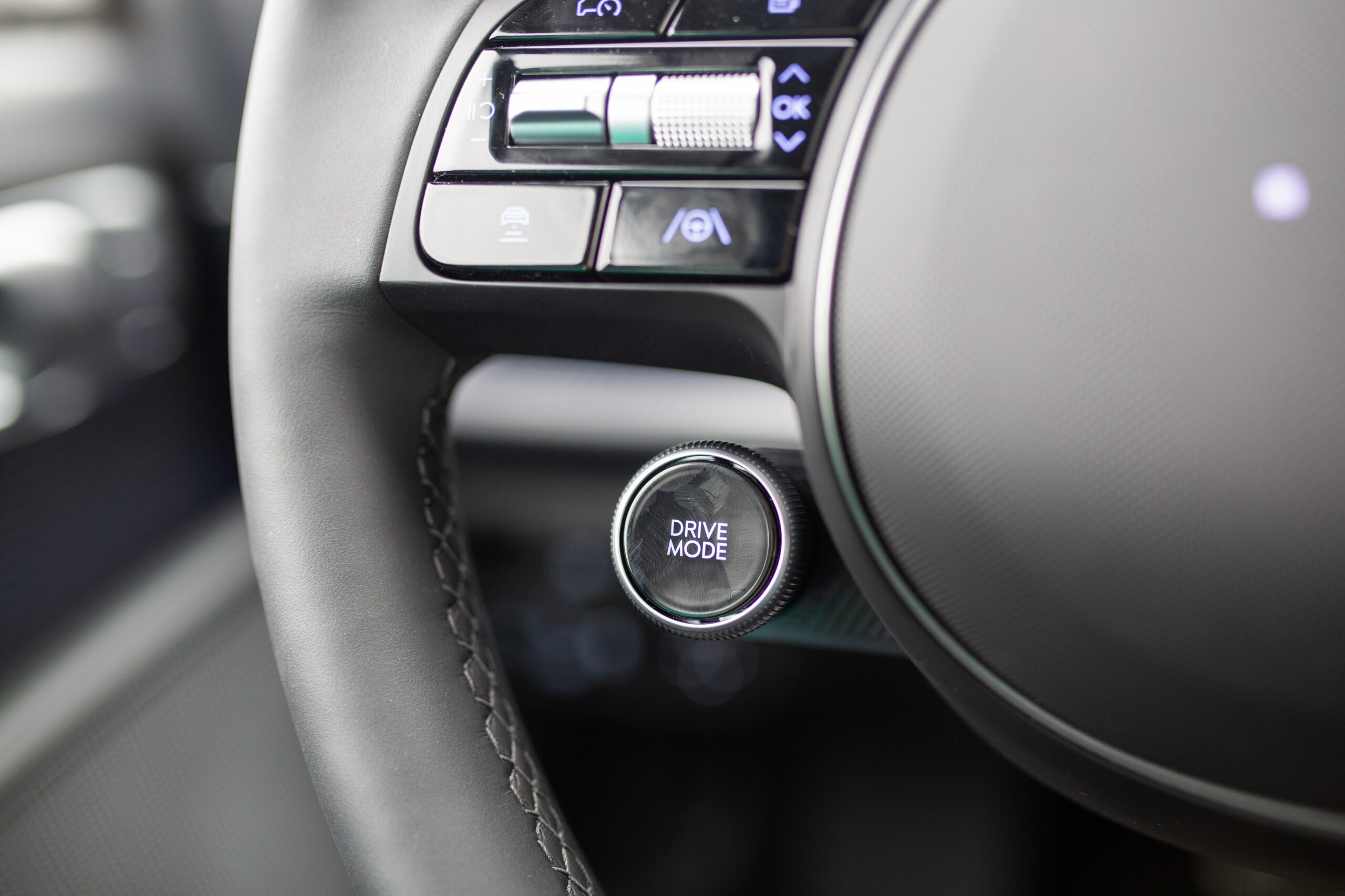 Beyond that, the interior was just cool looking. Hyundai went as close to maximum as possible, with easter eggs sprinkled across the cabin and huge focal points in the door panels. Those ridges in the door serve two purposes: to break up a large expanse of flat space and to provide reflective surfaces for the architectural ambient lighting that radiates upward. It’s the focal point of the interior and sells the hell out of it, and you can even choose any two colors you like and split them top to bottom.