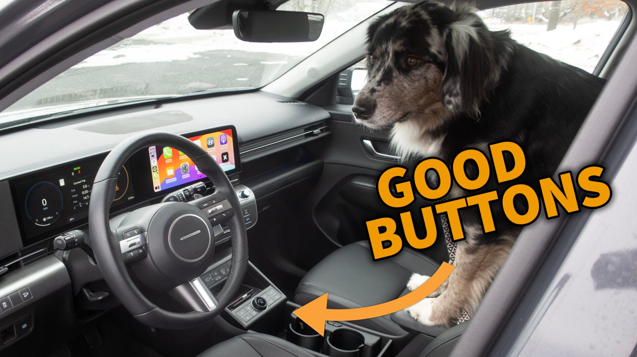 So kudos, again, to the Kona’s heated seat and steering wheel button design. Overall, I liked this car, even though the front end is creepily dystopian and acceleration is limited. Don’t worry, we’ll revisit more of what this car’s like and how well it hauls animals in an upcoming Will It Dog? review.