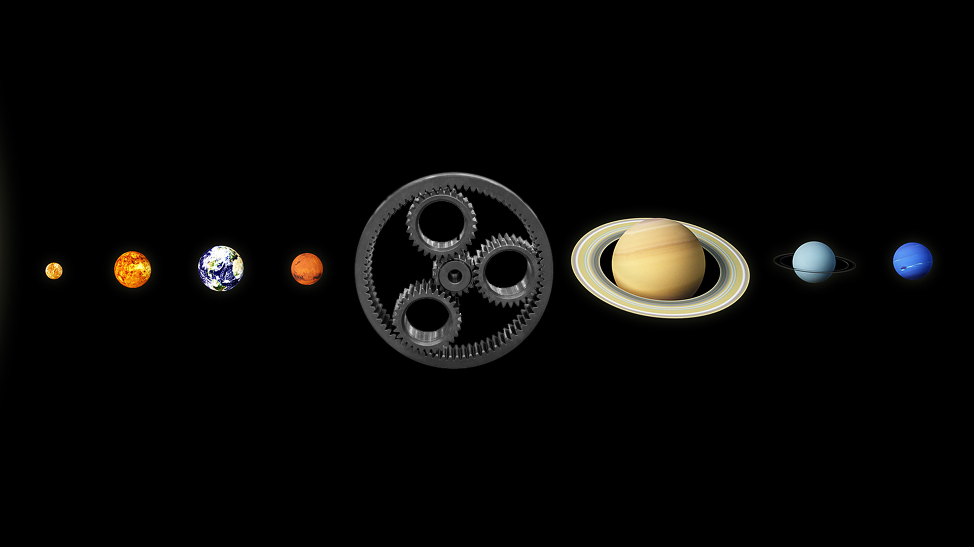 Planetary gears, also known as epicyclic gears, were developed by the Greeks more than 2,000 years ago and were initially intended to help predict the movements of planets in the solar system. As to how they came up with the gear, the simplest explanation here is the best one, which is that planetary gears consist of a central drive gear (i.e. the sun) with multiple “planet” gears that orbit around it. A ring gear surrounds both the central and planet gears.
