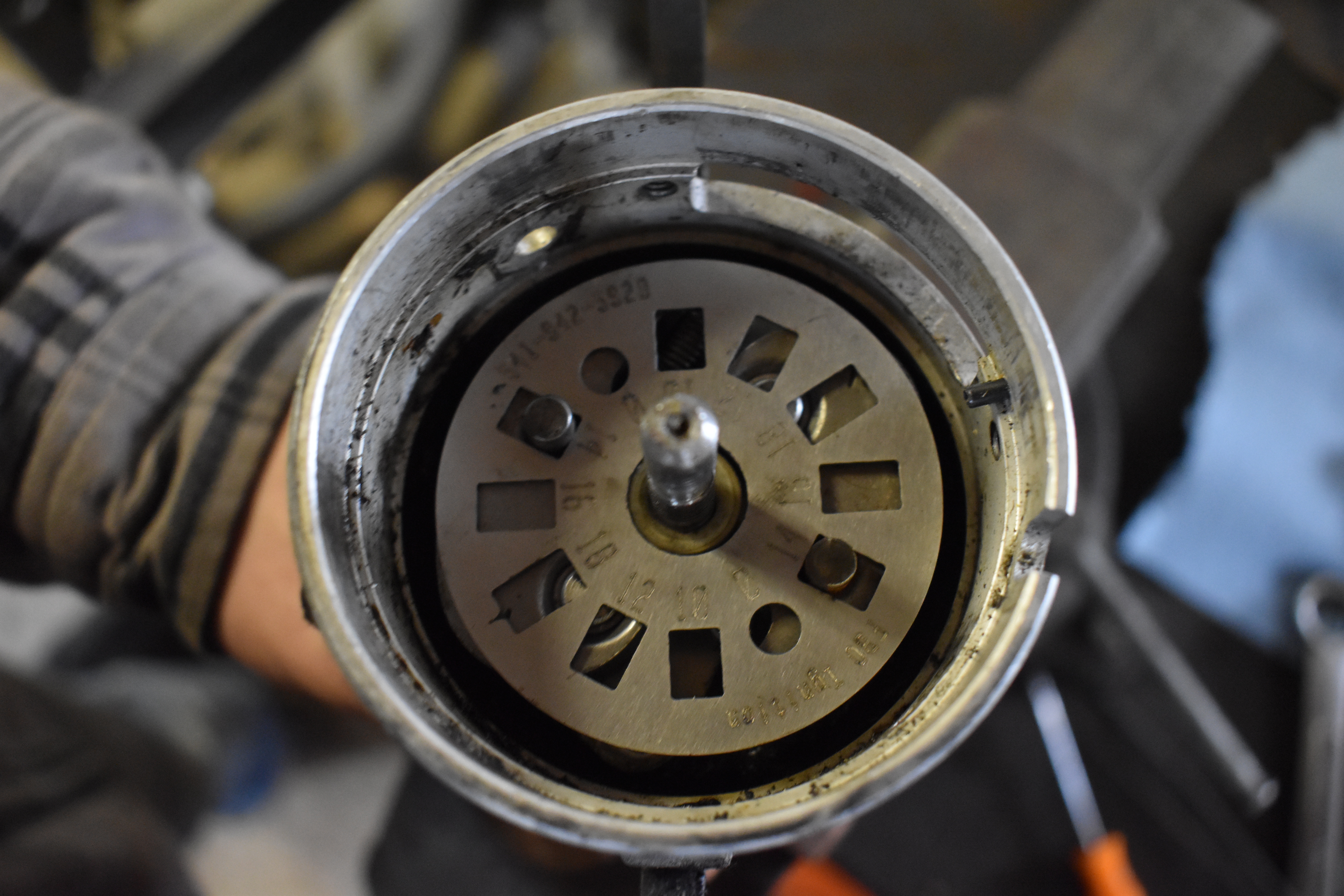 First, you have a shaft that goes straight down to the camshaft, which turns the distributor to create your initial timing. Only, the shaft isn’t one solid piece, it’s actually divided to allow the position of the rotor to move to create your total timing.
