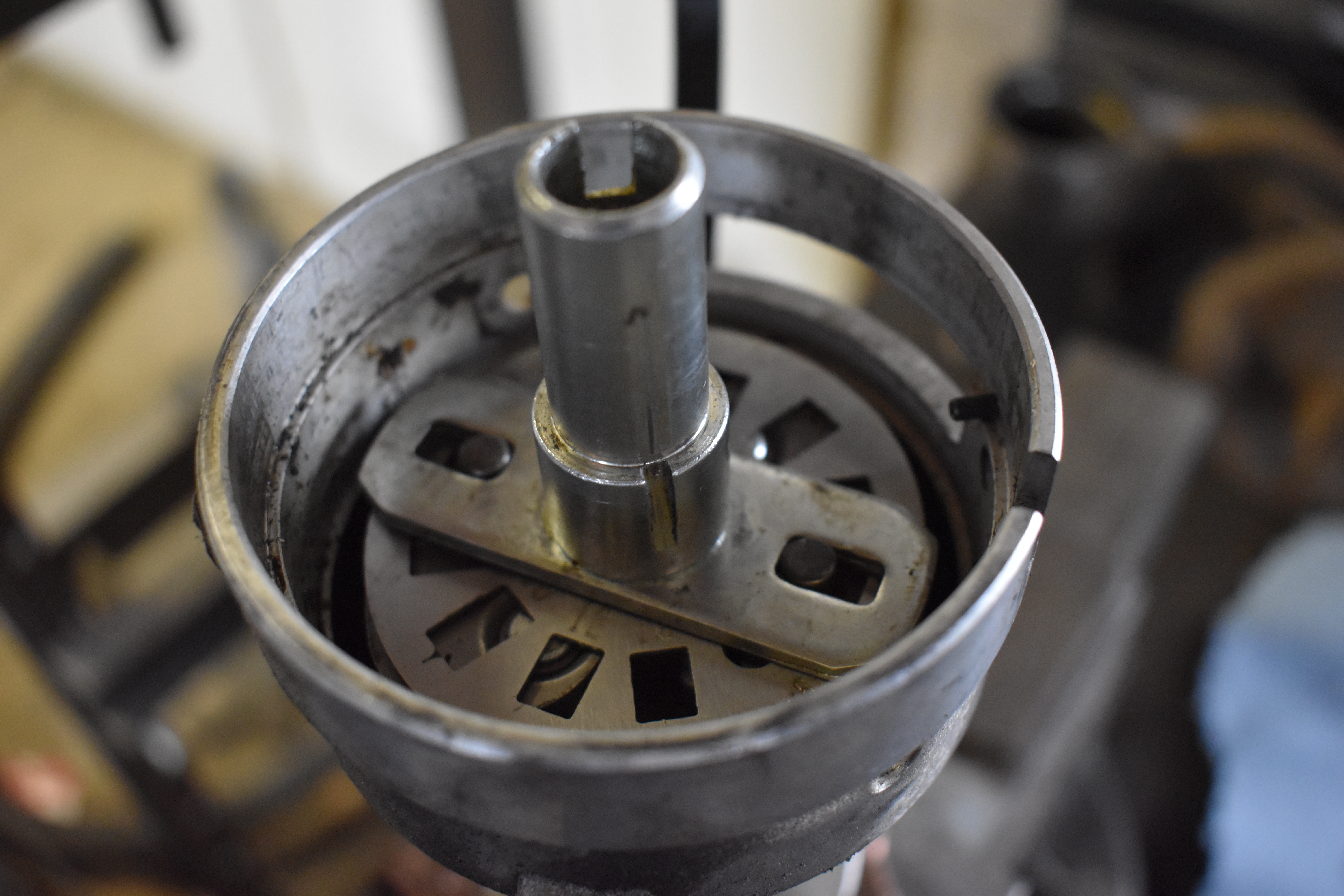 How do you limit the total advance in a setup like this? You have two options, the traditional method includes welding those slots to limit the amount of room that the weights have to travel. The other process is by picking up a limiting plate to install over the top of the weights.
