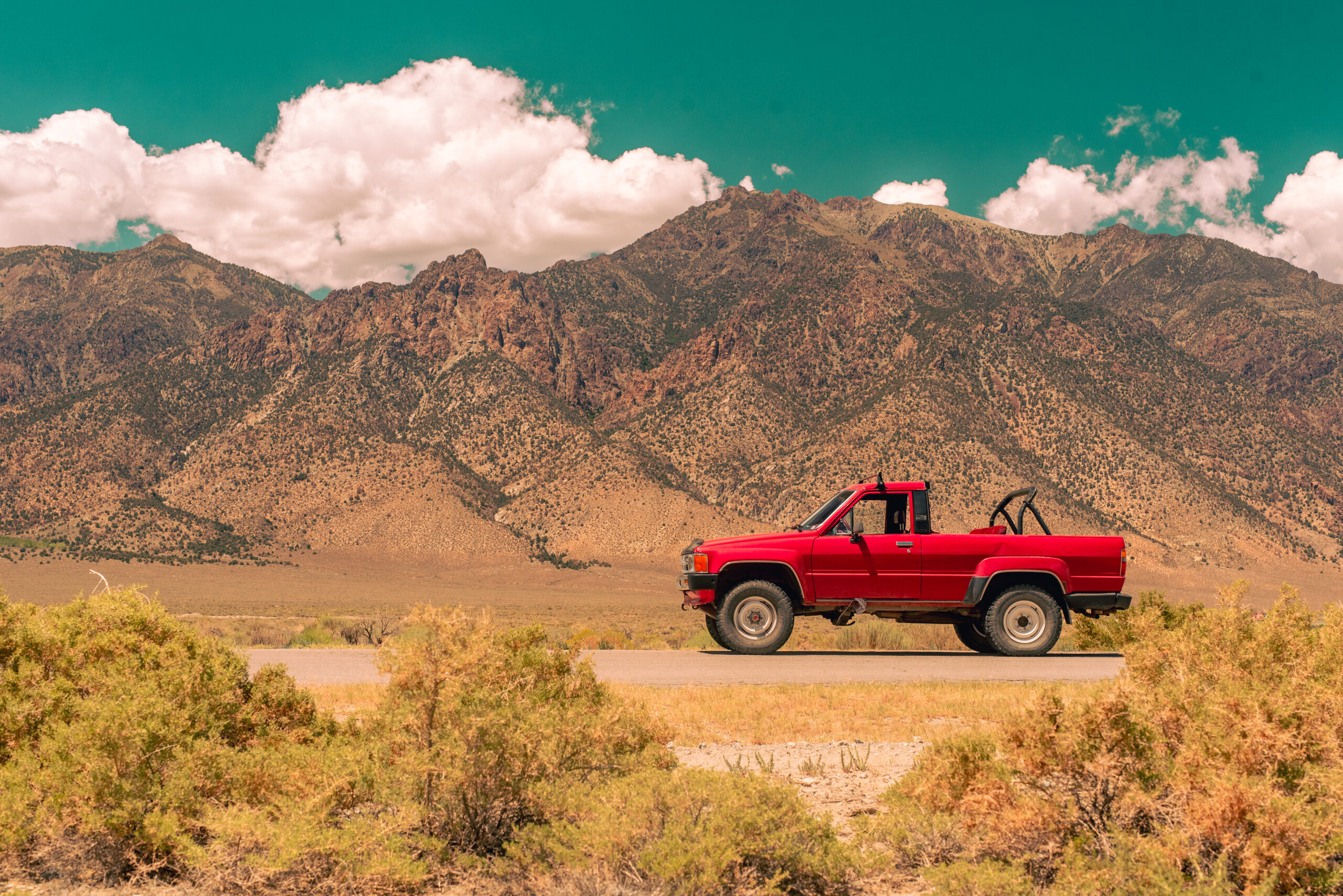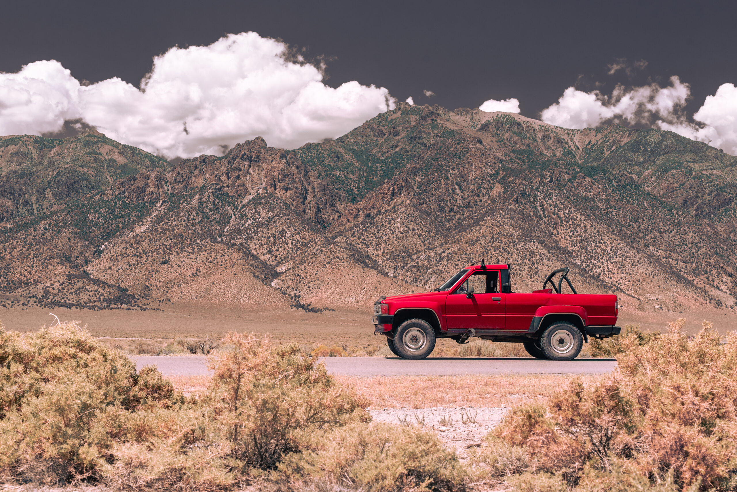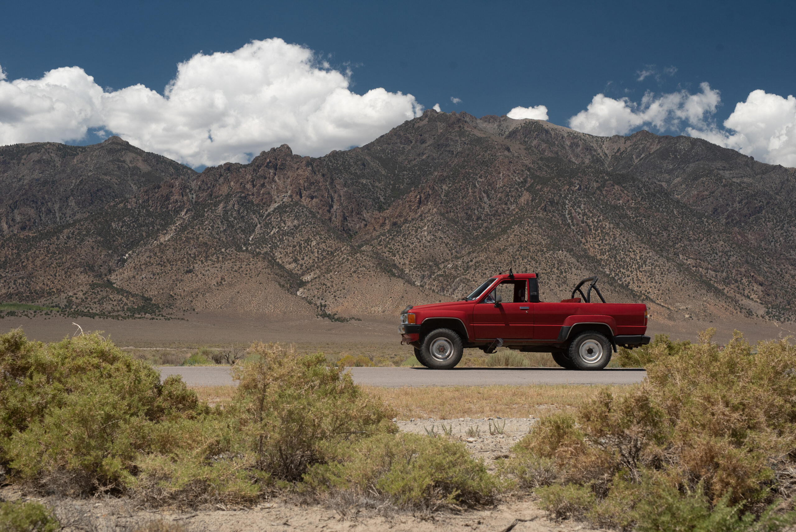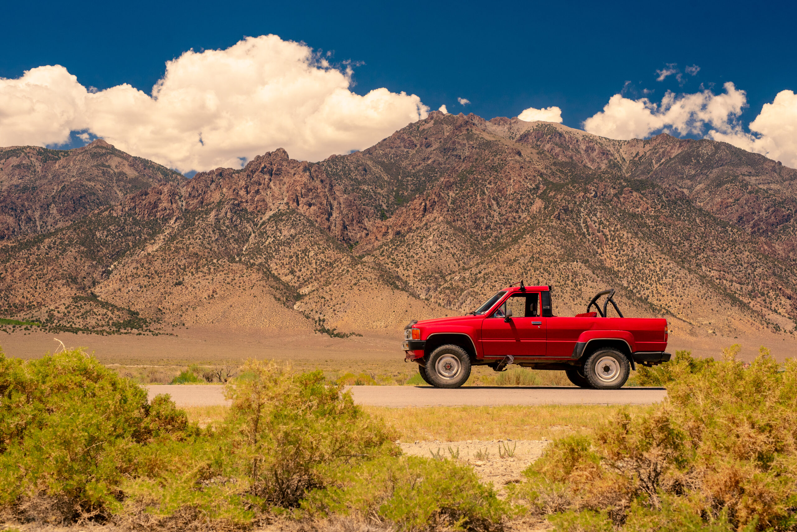I’ll start with basic edits on a relatively simple shot, this straight-out-of-camera side-profile view of my friend’s 1987 Toyota 4Runner in front of Toiyabe Dome in rural Nevada. The “basic edits” I’m referring to here can all be done in the “Light” panel in Lightroom, where we control exposure, shadows, highlights, and other lighting-based attributes of our photograph. We can also see another crucial part of the photograph here: the histogram.