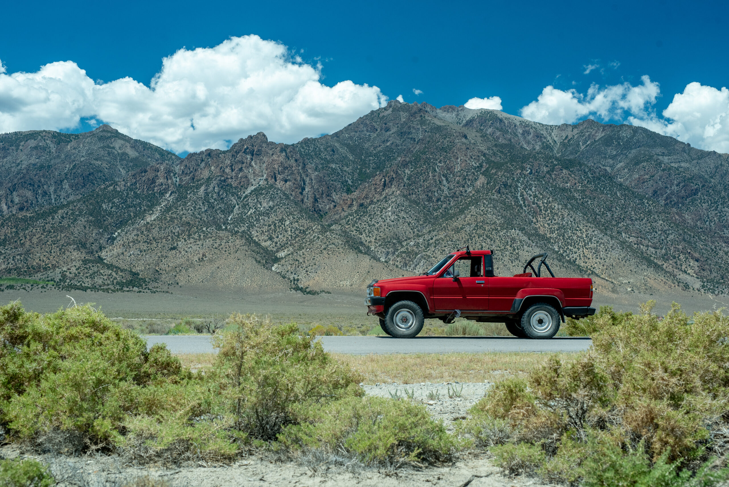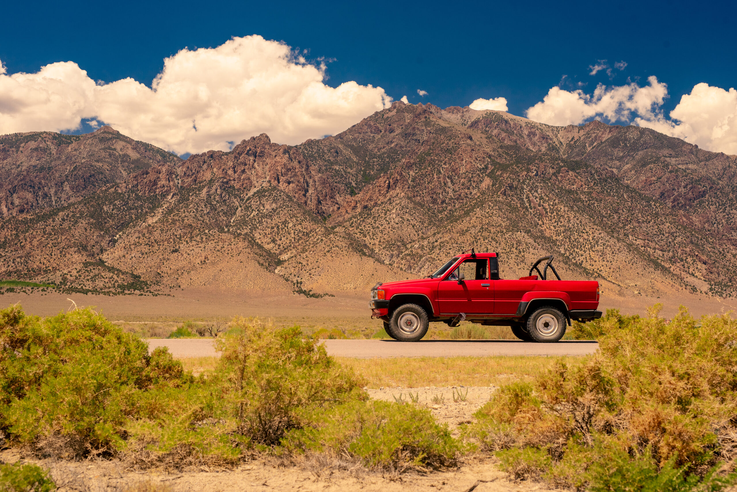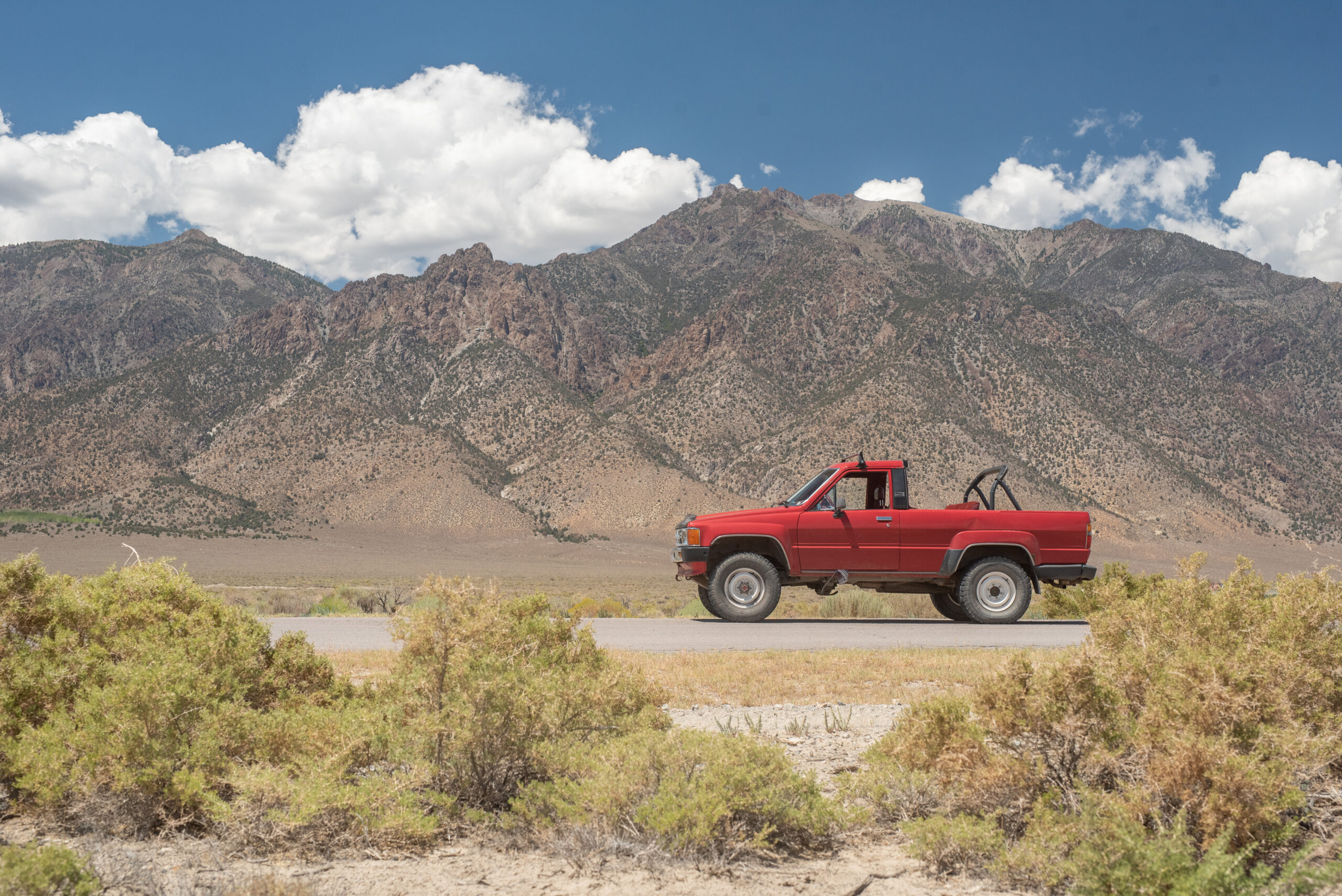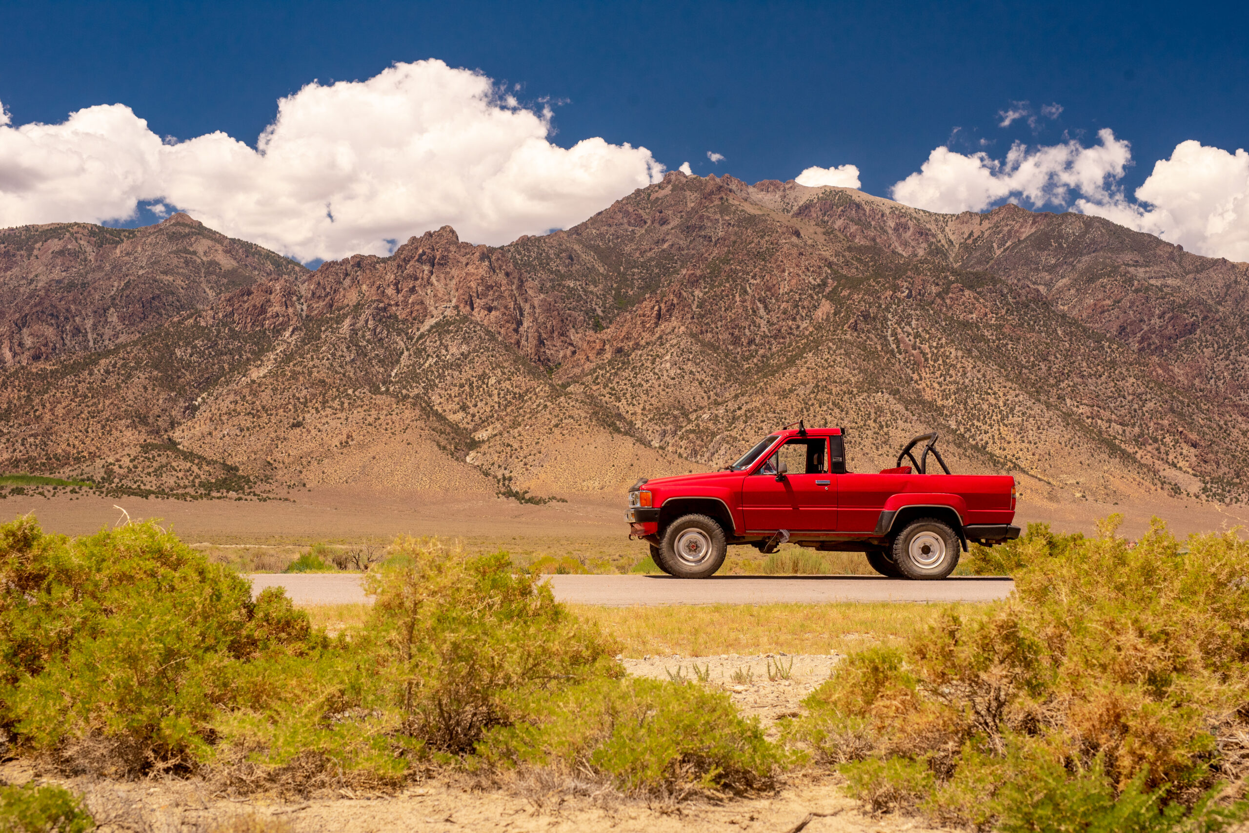 I’ll start with basic edits on a relatively simple shot, this straight-out-of-camera side-profile view of my friend’s 1987 Toyota 4Runner in front of Toiyabe Dome in rural Nevada. The “basic edits” I’m referring to here can all be done in the “Light” panel in Lightroom, where we control exposure, shadows, highlights, and other lighting-based attributes of our photograph. We can also see another crucial part of the photograph here: the histogram.