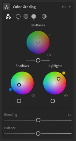The final, and most advanced step, is to adjust your color grading (also referred to as split toning). This is the most complicated step, and it’s best to have a light hand with it, but it allows you to add an individual color tint to shadows, highlights, and midtones independently.