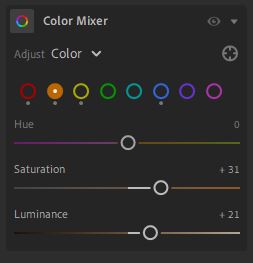 Now is when personal taste reigns and my tips become mere suggestions. We have reached the Color Mixer of Adobe Lightroom, which allows you to adjust hue, saturation, and luminance (brightness) for eight different colors in the photo, covering the entire rainbow of pixels that can appear in your image.