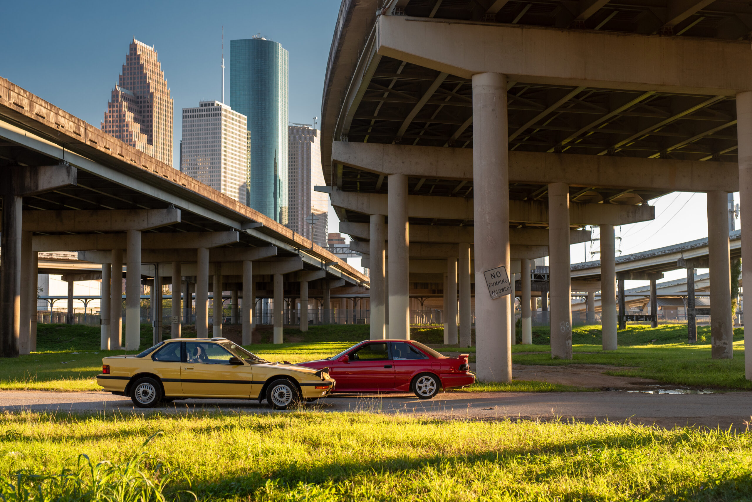 Even your light-editing technique will have to change slightly depending on the color of the car you’re using as your focal point. In the shot of my friend’s Prelude and Corolla, the underlying edit is quite dark; even though I’m losing some detail in the shadows of the bridges and I have a left-skewed histogram, the final shot still pops because the cars and the skyline are lit well.