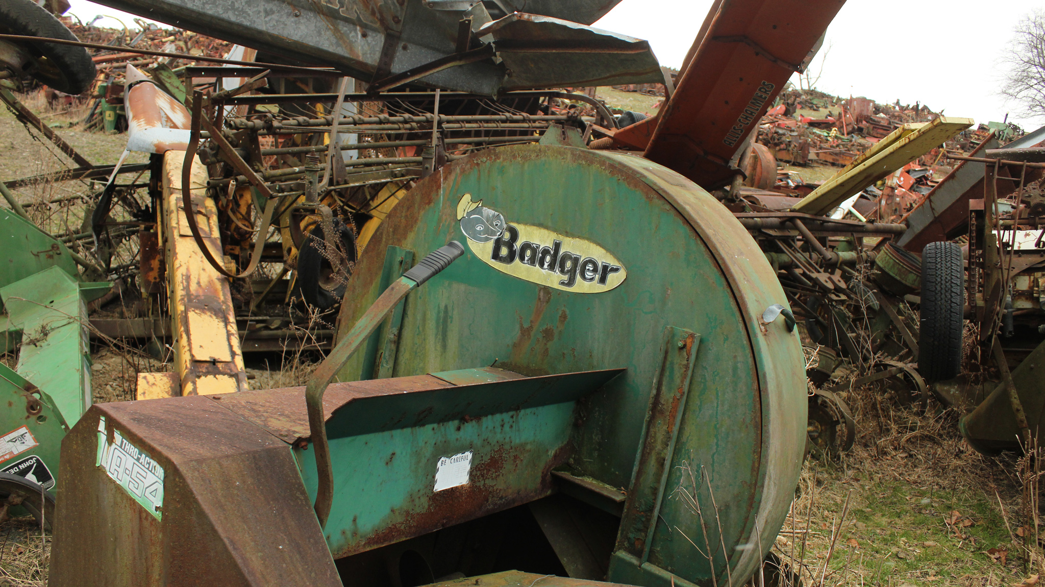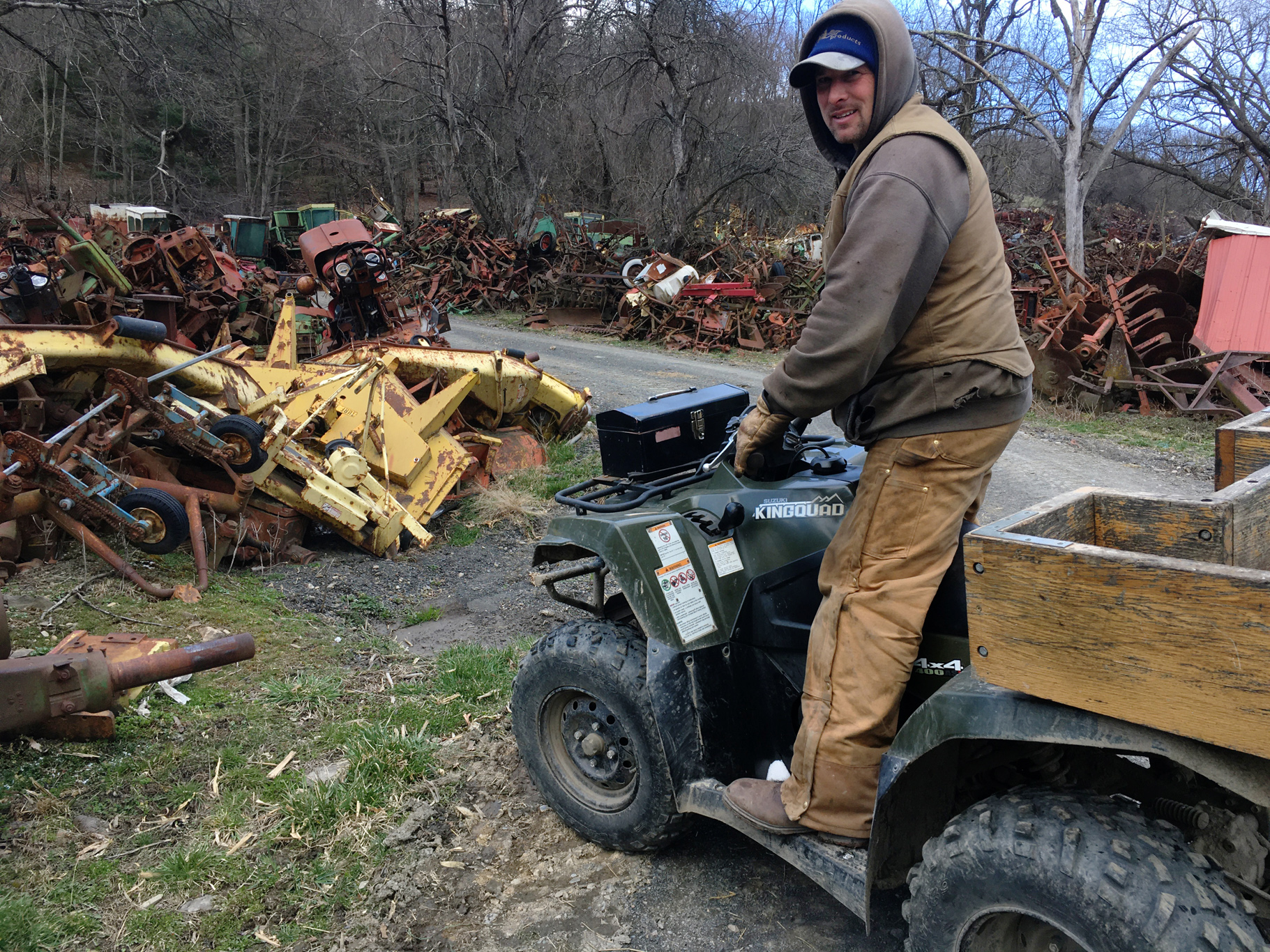 Covered in multiple layers of winter clothes, Jess navigated the maze of metal mounds on his ATV as he showed me around, stopping every now and then to search for components. According to him, there’s no “official” organization system, but I sensed a general method to the madness. PTO shafts were piled in one area, wheels and tires in another. Older square balers, silage choppers, and silage blowers covered one hillside; and on the other sat combines and mowers. Conspicuously lacking in number were tractors. A small area featured a handful of broken-down John Deeres, Farmalls, and Fords, but the overwhelming majority of items were engine-less implements meant to be towed by tractors.
